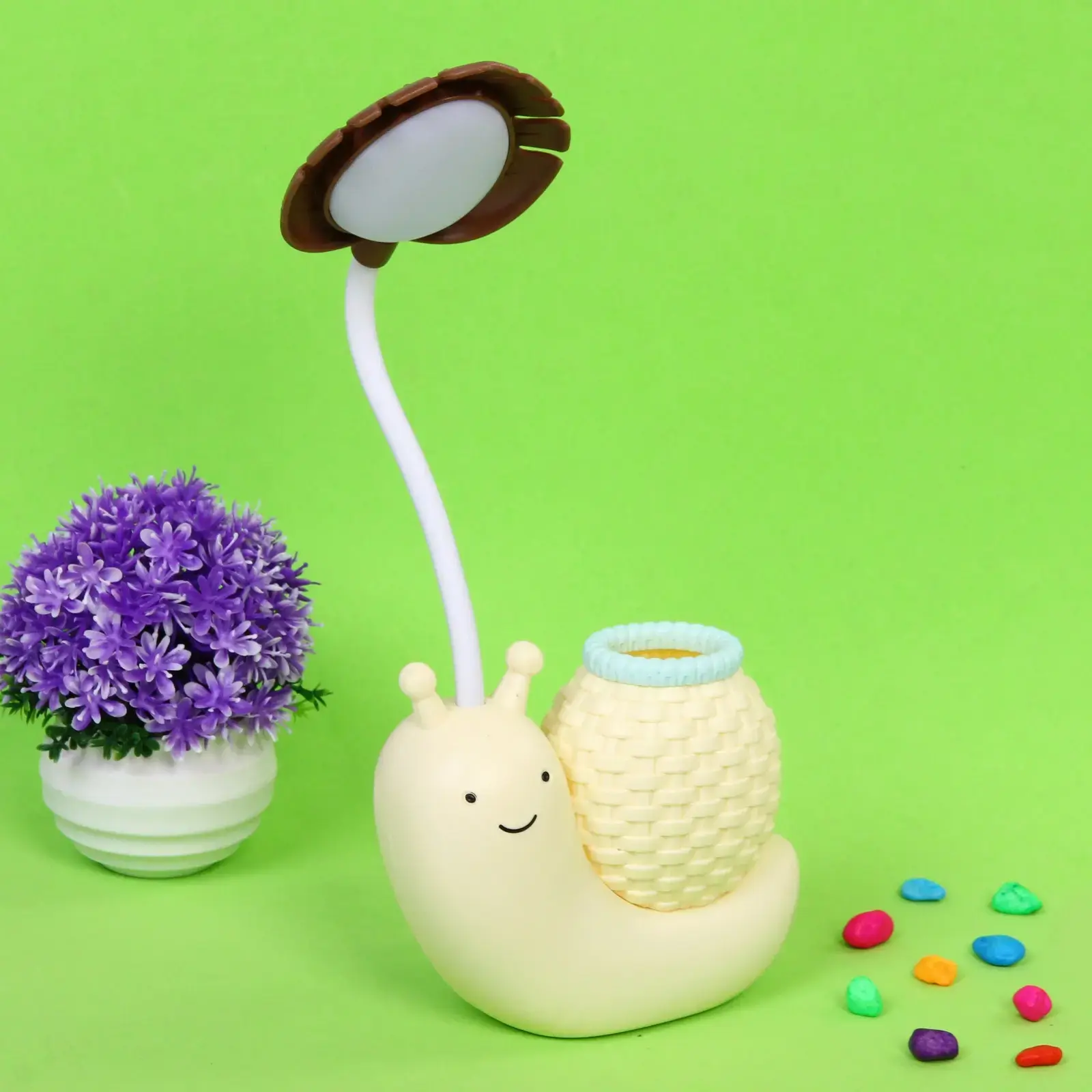 Настольная лампа «Sweet - Улитка» выделяется среди других светильников благодаря своей многофункциональности. Корзинка на спине улитки может использоваться для хранения мелких предметов или как вазочка для цветов. Это делает лампу не только источником света, но и практичным аксессуаром для вашего интерьера.