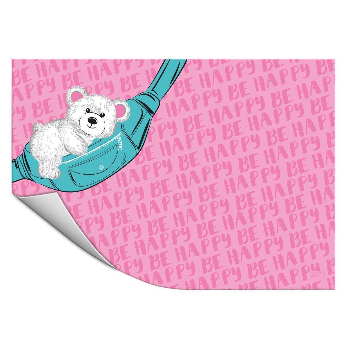 Превратите рабочее место в источник вдохновения с настольным покрытием 'Мика на сумке'. Его красочный дизайн с улыбчивым медвежонком и позитивной надписью 'BE HAPPY' создает радостную атмосферу для занятий творчеством.