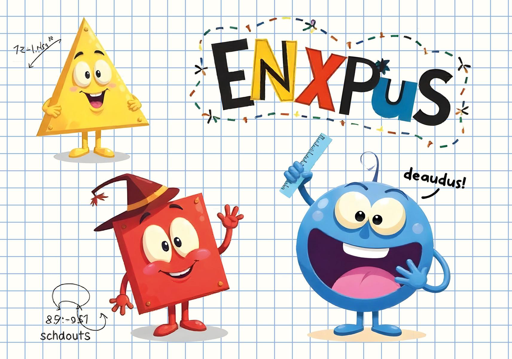 - Привлекательный дизайн: яркий разноцветный принт с изображением антропоморфных геометрических фигур на фоне синей клетки сделает занятия еще более увлекательными.