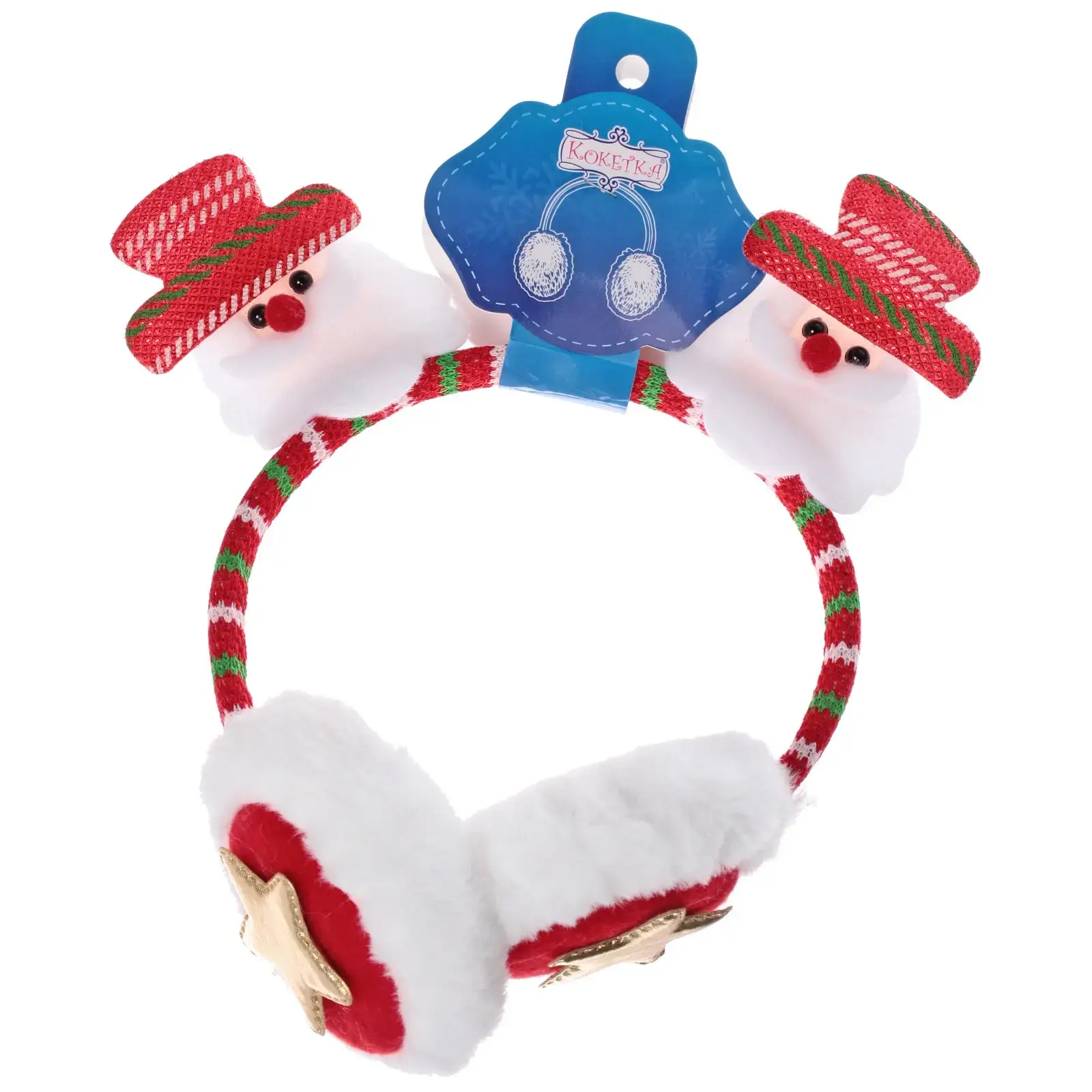 Наушники имеют обручевую конструкцию, что обеспечивает надежную посадку и комфорт при ношении. Они легко надеваются и снимаются, что делает их идеальными для быстрого использования. Мягкие ушные накладки из белого плюша с золотыми звездочками обеспечивают дополнительный комфорт и стильный вид. Эти наушники подойдут как для взрослых, так и для детей, добавляя веселья в зимние дни.