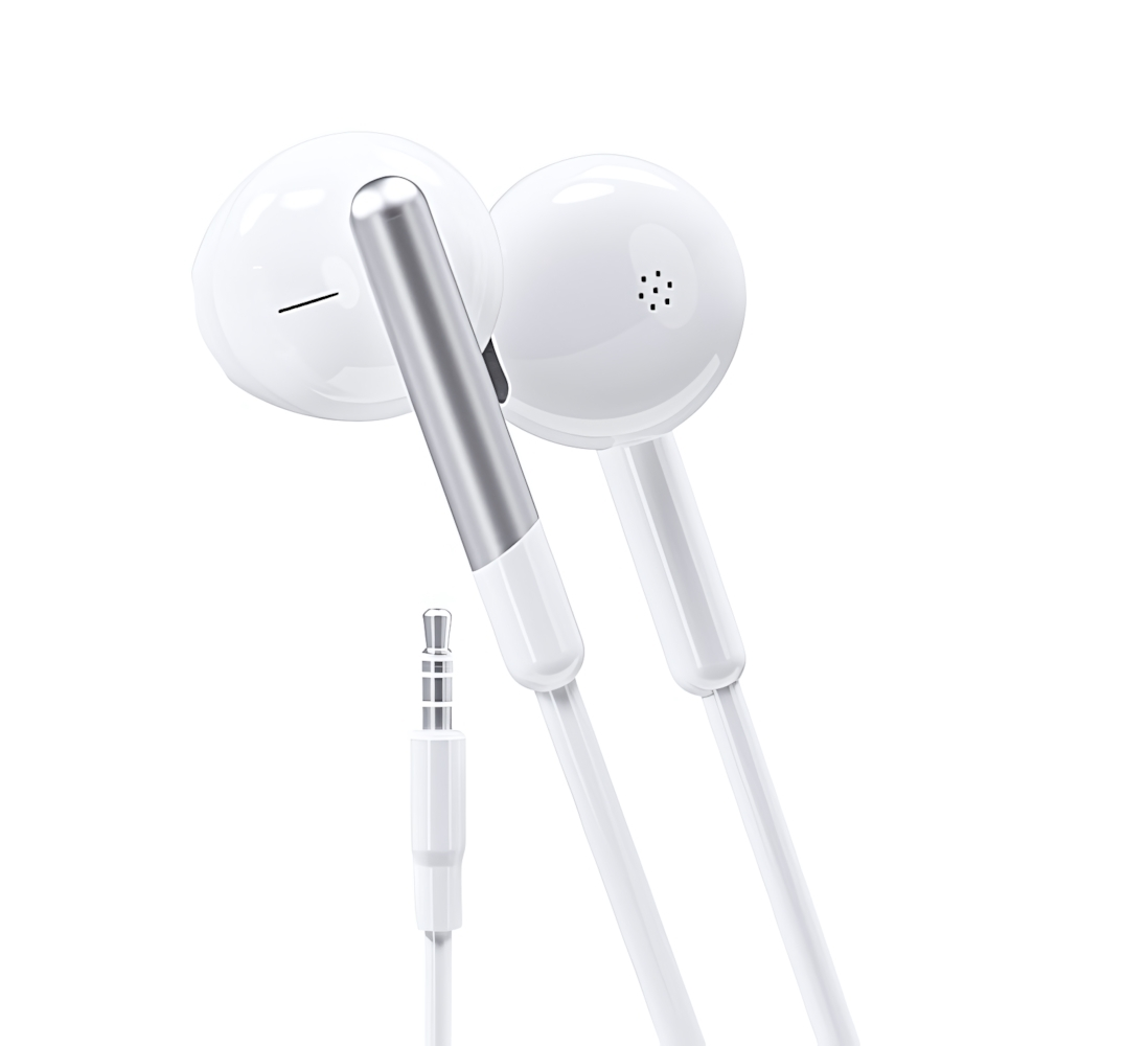 Наушники выполнены в стильном белом цвете с элементами серебристого, что придаёт им современный вид. Округлая форма и гладкая поверхность обеспечивают удобство при ношении. Длина провода не указана, но он достаточно длинный для комфортного использования. Эти наушники станут отличным дополнением к вашему мобильному устройству и подарят вам незабываемые моменты наслаждения музыкой.