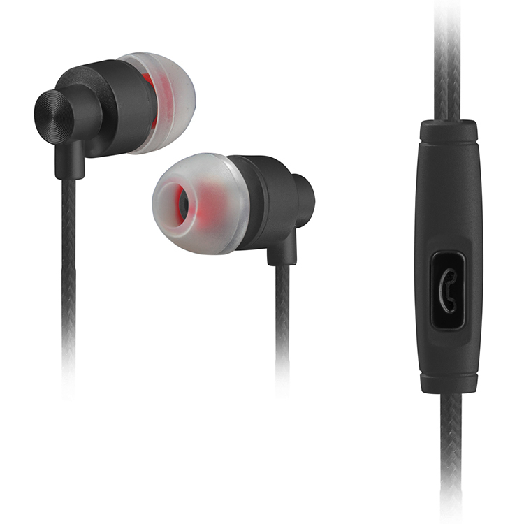 Наушники внутриканальные с микрофоном и кнопкой ответа, черные, силиконовые амбушюры, плоский шнур, компактные