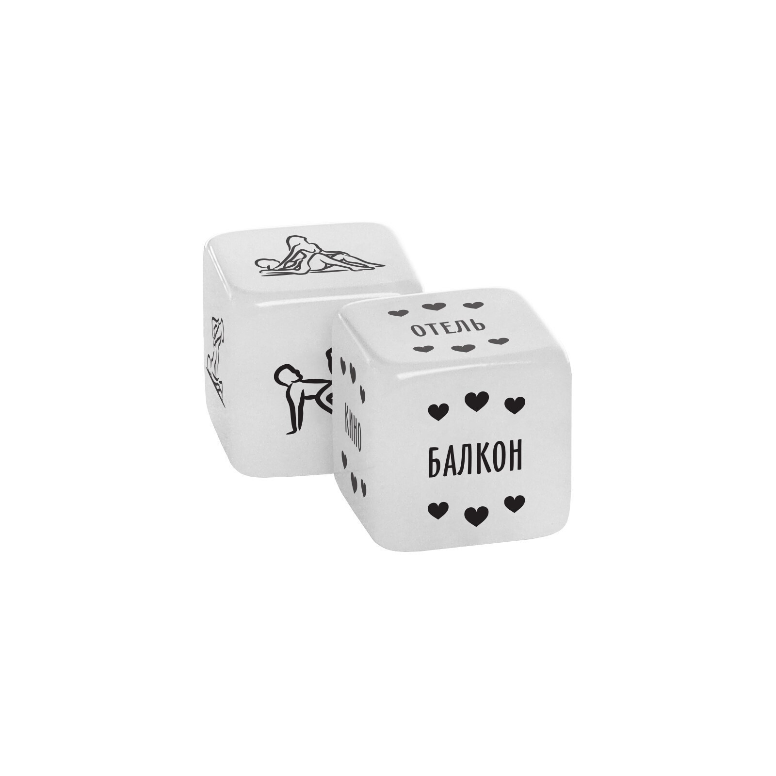 - Первый кубик определяет место романтической встречи: отель, кино, балкон или другие варианты