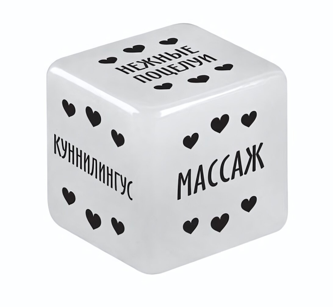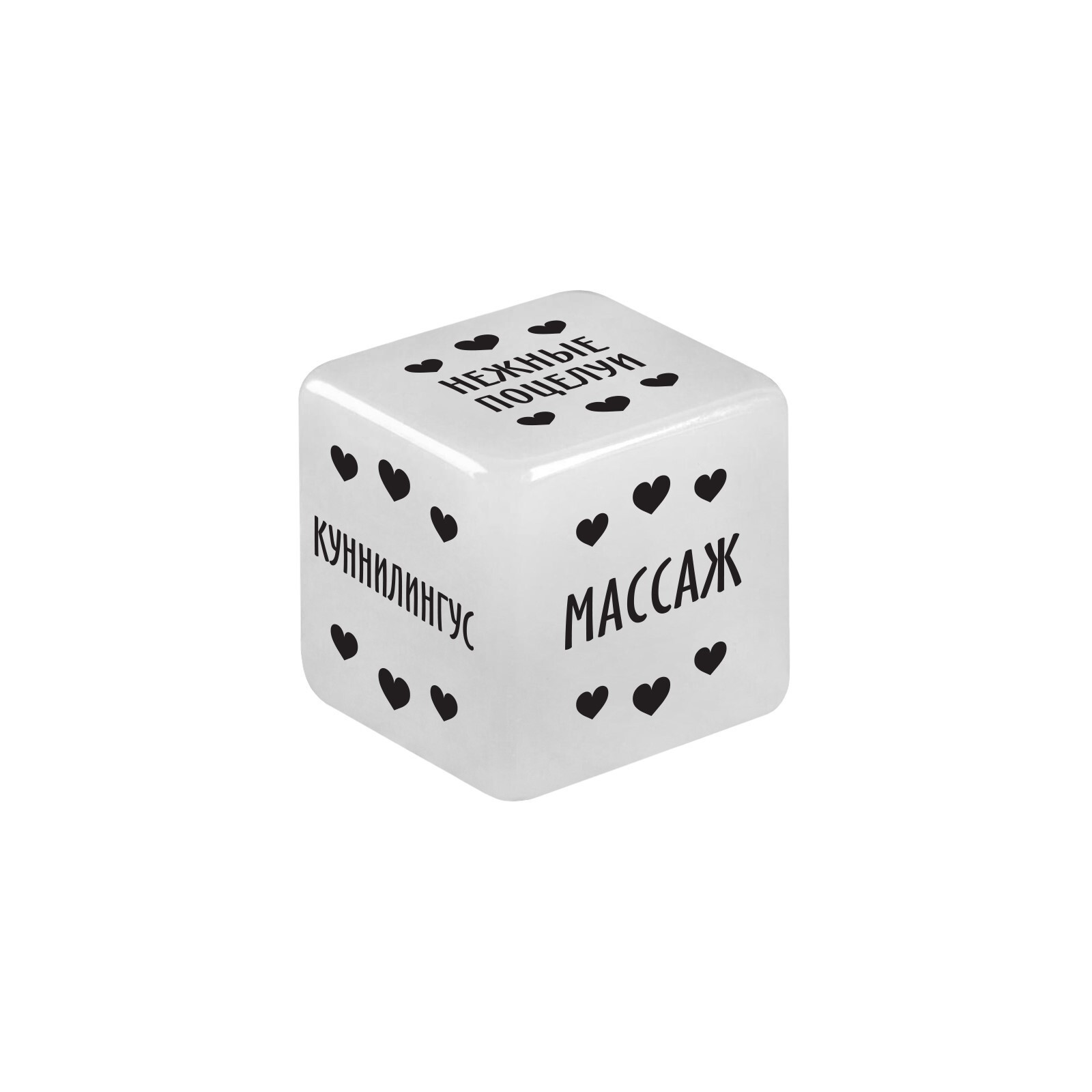Эротический кубик «ECSTAS», неоновый, 4 варианта ласк, пластик, белый