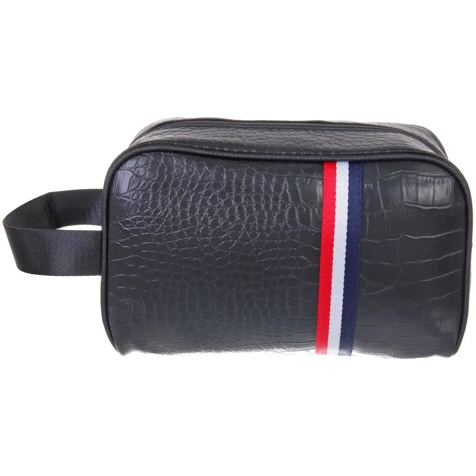 Несессер выполнен из качественного ПВХ, что обеспечивает долговечность и легкость в уходе. Его текстура не только стильная, но и практичная, так как устойчива к загрязнениям. Декоративная лента с тремя полосами (красной, белой и синей) добавляет оригинальности и подчеркивает индивидуальность. Этот несессер станет отличным подарком для мужчин, которые ценят стиль и функциональность в своих аксессуарах.