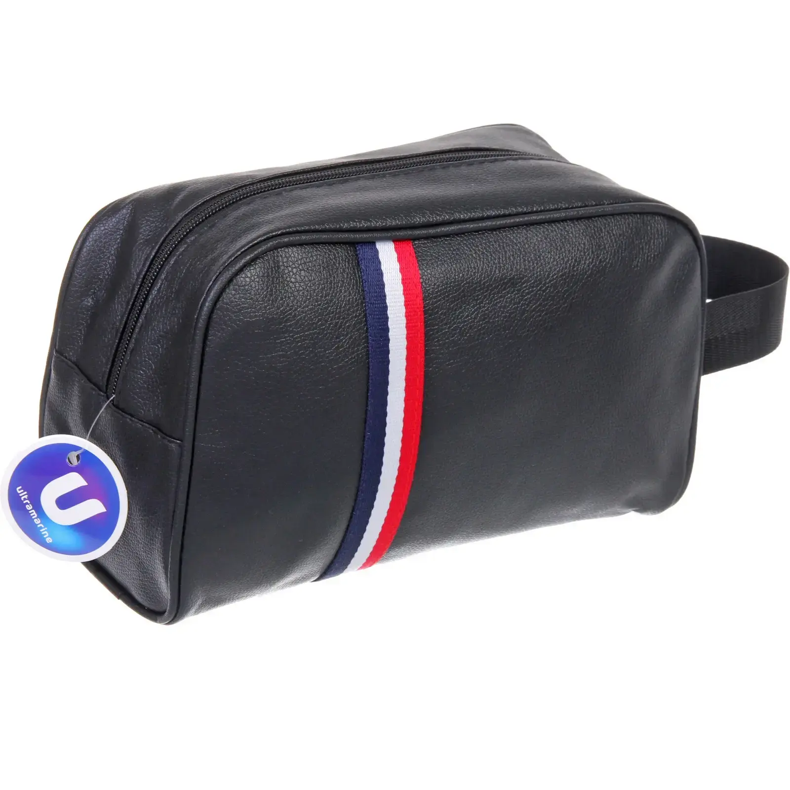Несессер выполнен в черном цвете с декоративной полоской из трех цветов: красного, белого и синего, что добавляет ему оригинальности. Его текстурированная поверхность не только приятна на ощупь, но и устойчива к повреждениям. Этот несессер станет отличным подарком для мужчин, которые ценят качество и стиль.