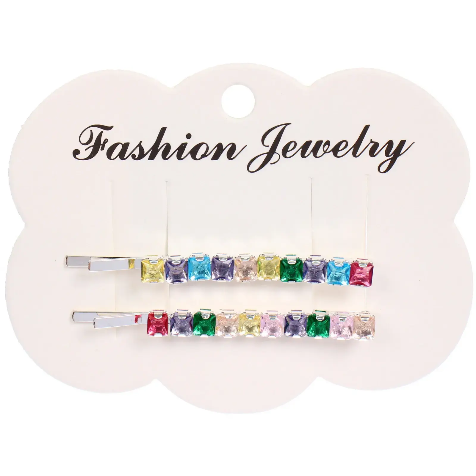 Каждый зажим имеет длину 5 см и украшен квадратными стразами различных цветов: розового, фиолетового, голубого, зеленого, желтого и прозрачного. Упаковка выполнена в виде блистера с подвесом, что делает их удобными для хранения и демонстрации. Эти невидимки станут отличным подарком для друзей и близких, а также прекрасным дополнением к вашему личному стилю.