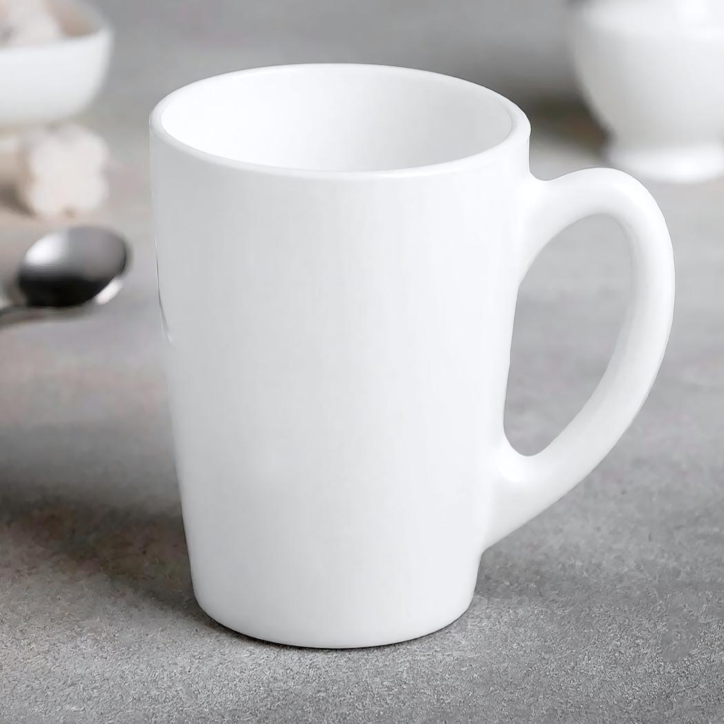 Кружка "HoReCa" из стекла, 320 мл, белая, прямоугольная форма, глянцевая поверхность