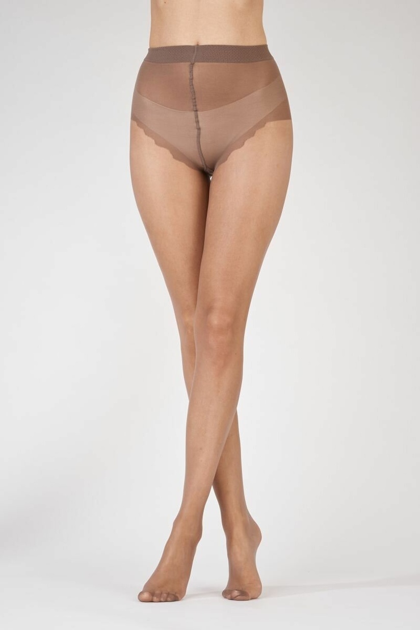 Плотность 10 denier создает эффект второй кожи с деликатным мерцанием. Состав 86% нейлон + 14% эластан гарантирует идеальную посадку без сползания. Золотистый оттенок подчеркивает естественную красоту ног.
