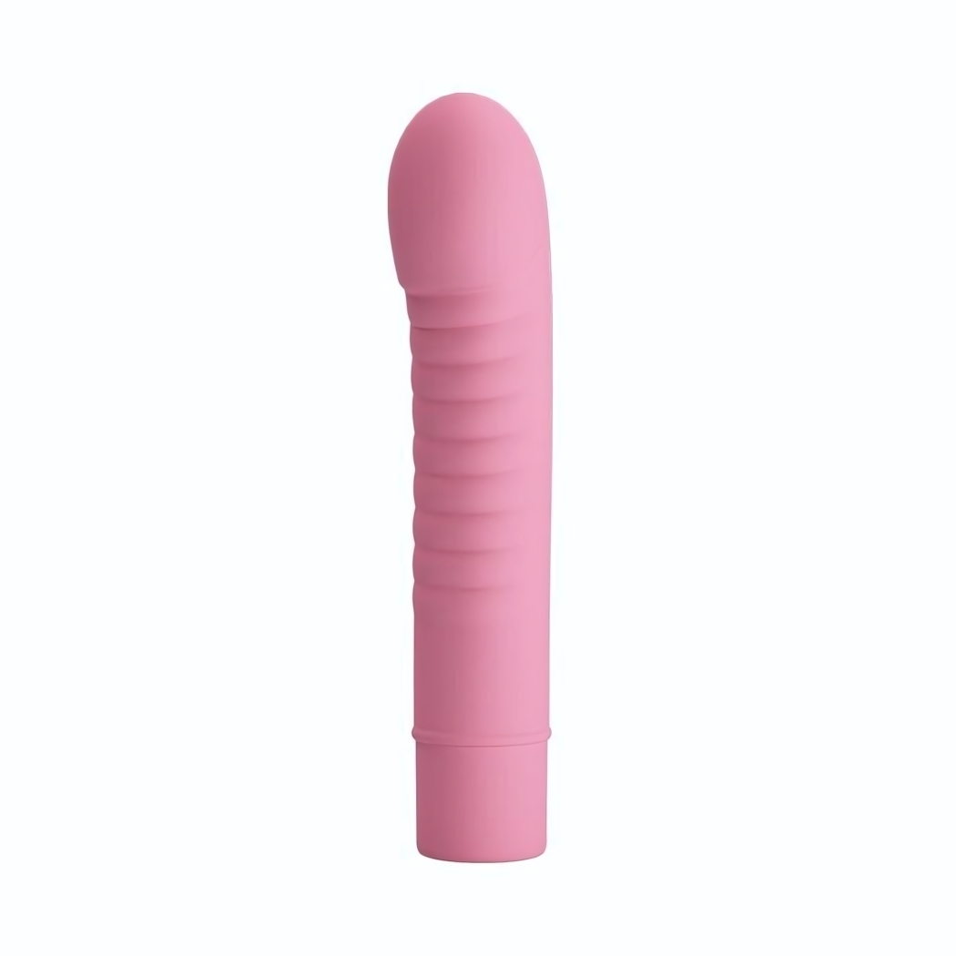 Мини-вибратор «Mick» с ребристой поверхностью, 10 режимов, нежно-розовый, силикон, 13 см
