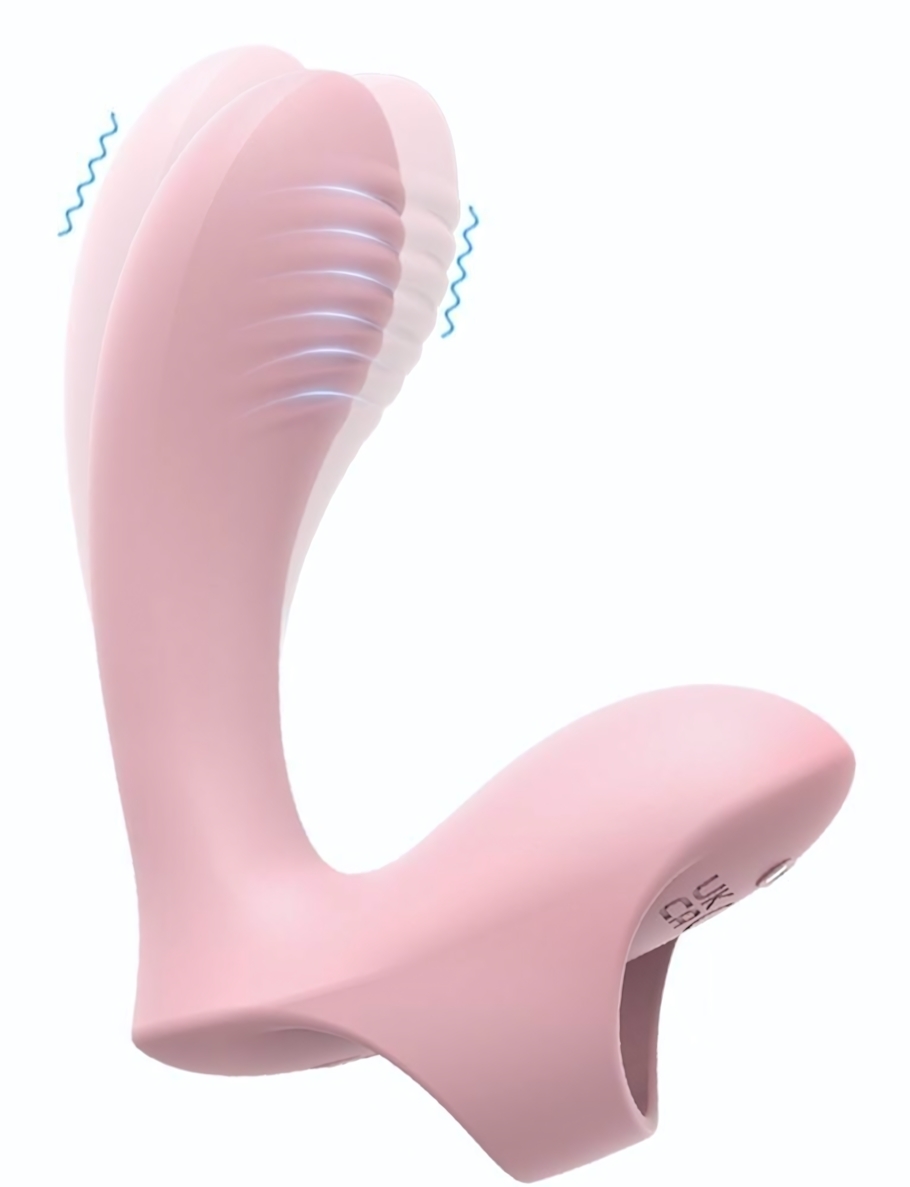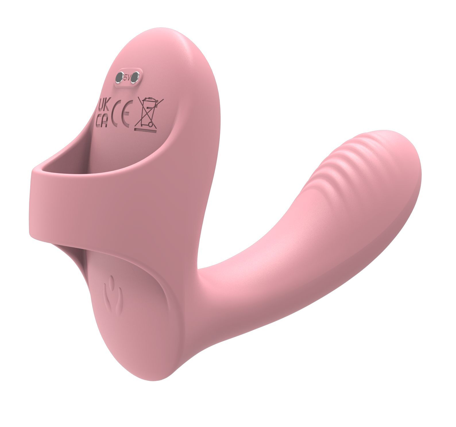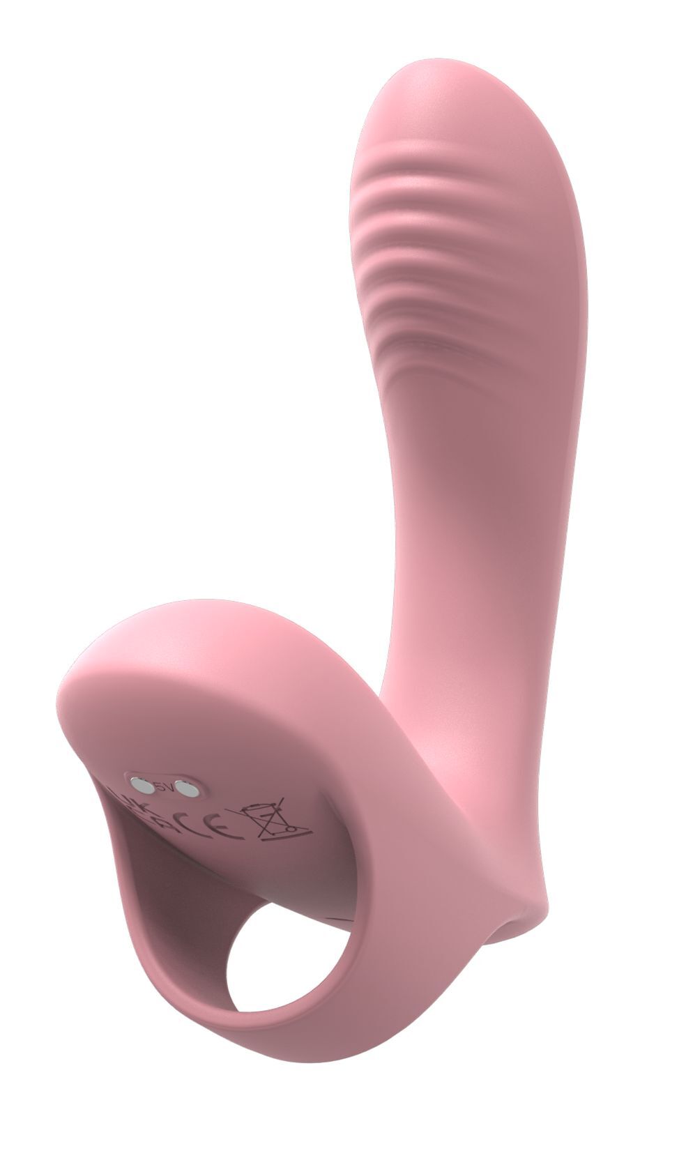 Вибромассажер нежно-розовый с петлей на палец, 9 режимов вибрации, силикон