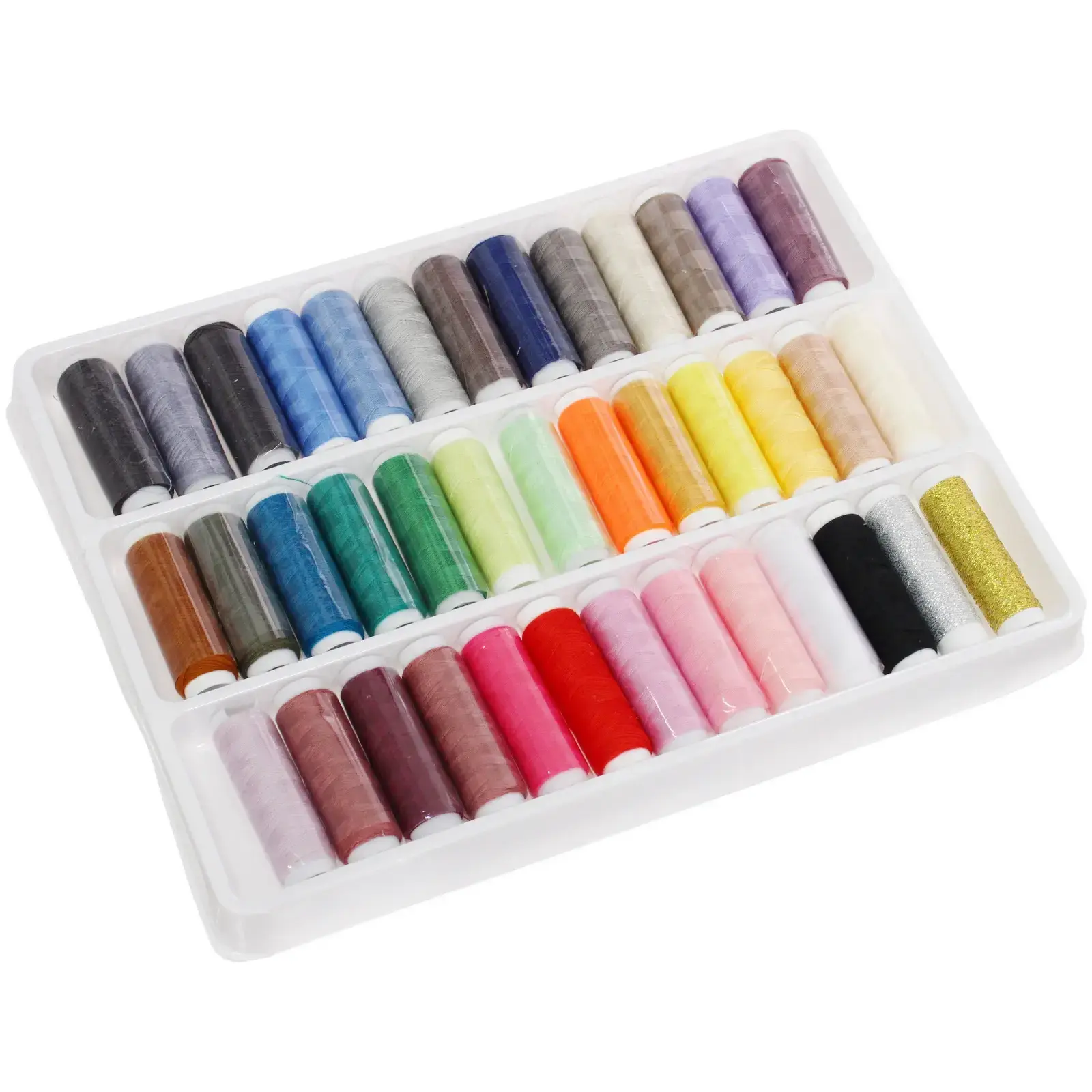 Набор идеально подходит как для профессиональных швей, так и для начинающих. Благодаря разнообразию цветов, вы сможете легко подобрать нужный оттенок для любого проекта. Упаковка выполнена в виде компактного пластикового контейнера с ячейками, что обеспечивает удобное хранение и доступ к ниткам. Вы сможете легко организовать свое рабочее пространство и всегда иметь под рукой необходимые цвета.