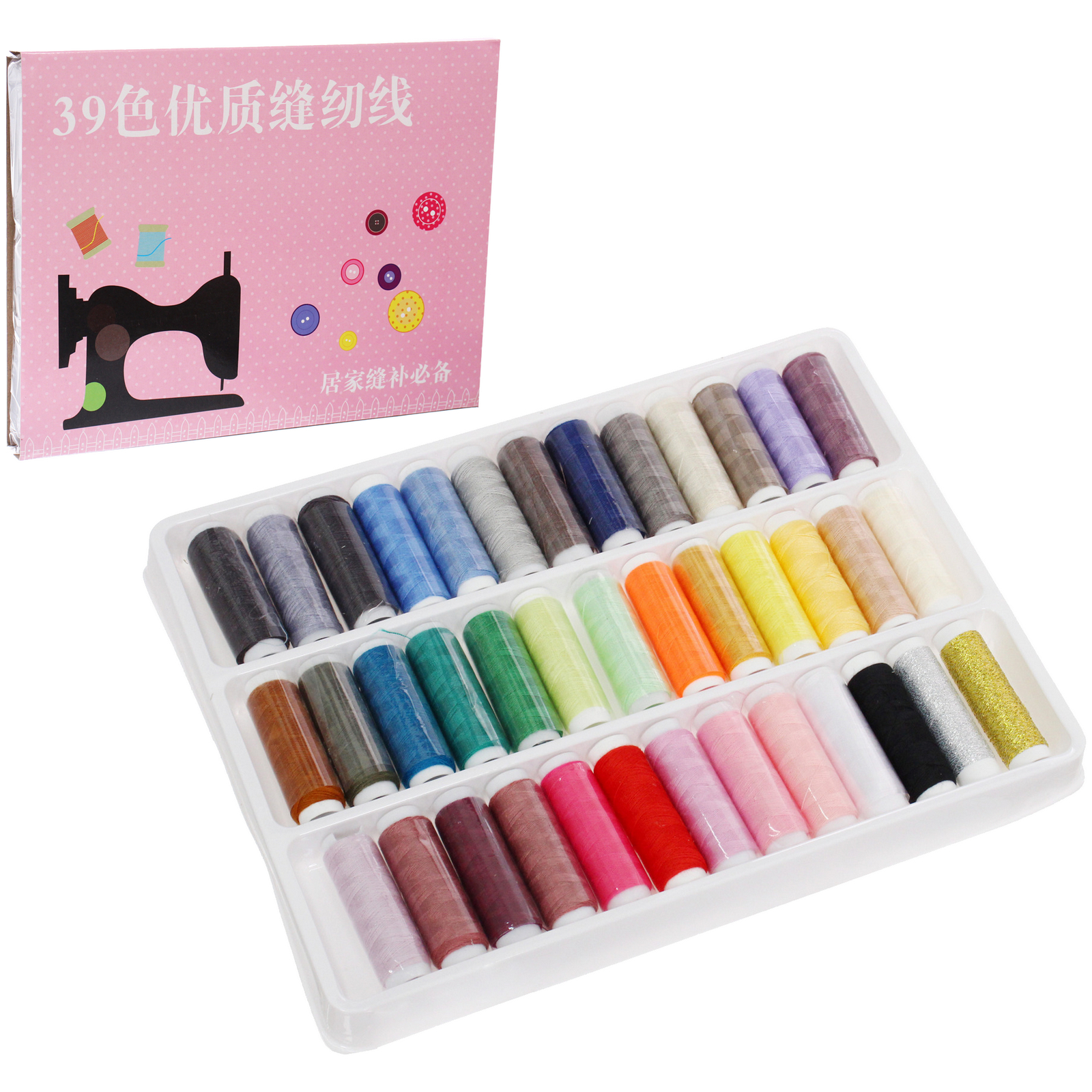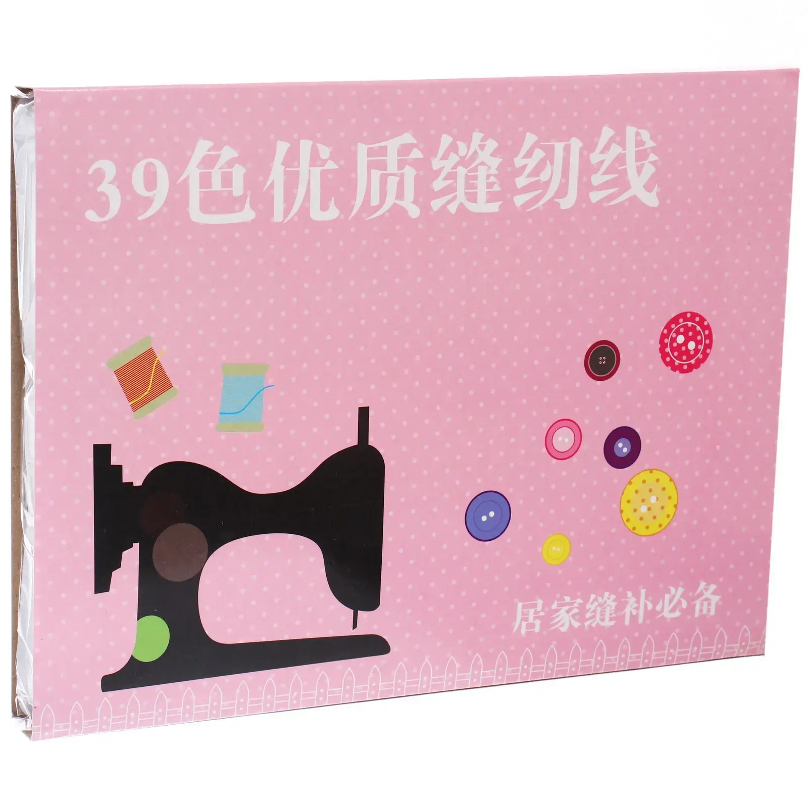 Каждая катушка имеет стандартный размер, что делает их совместимыми с большинством швейных машин. Нитки выполнены из полиэстера, что обеспечивает их долговечность и устойчивость к износу. Упаковка имеет стильный дизайн с розовым фоном и изображениями швейной машины и пуговиц, что добавляет эстетическую ценность вашему рабочему месту.