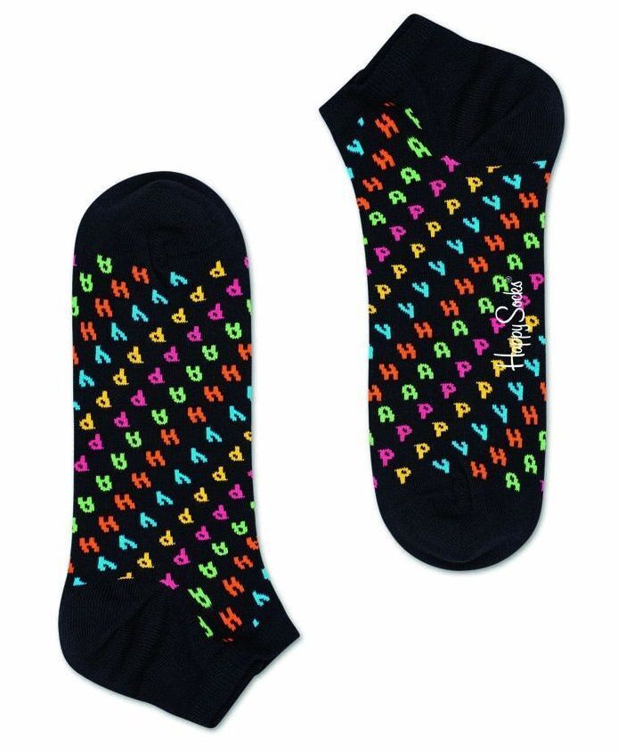 Носочки низкие унисекс «Happy Low Sock» с цветным принтом, размер 25, черный, 86% хлопок