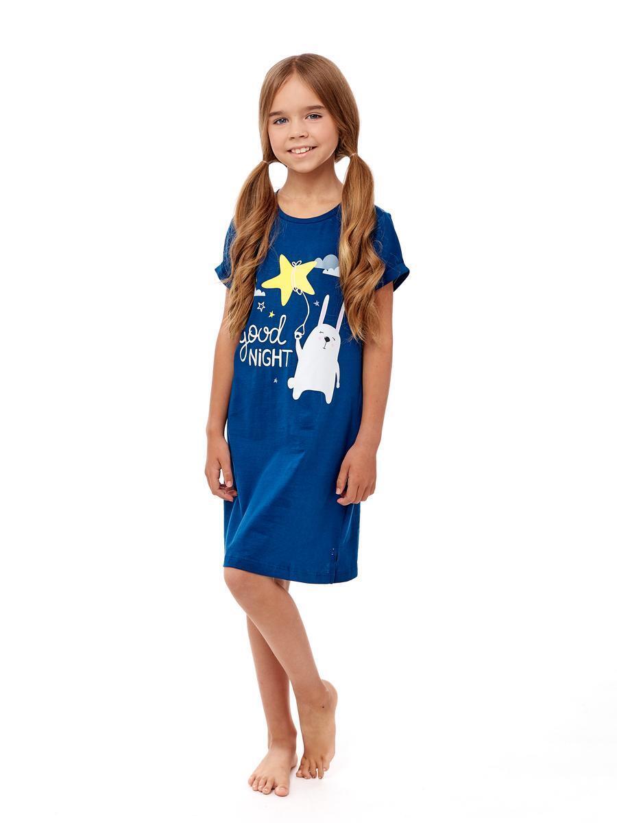Детская ночная сорочка Umka, синяя, с принтом "Good Night", размер 98/104, хлопок