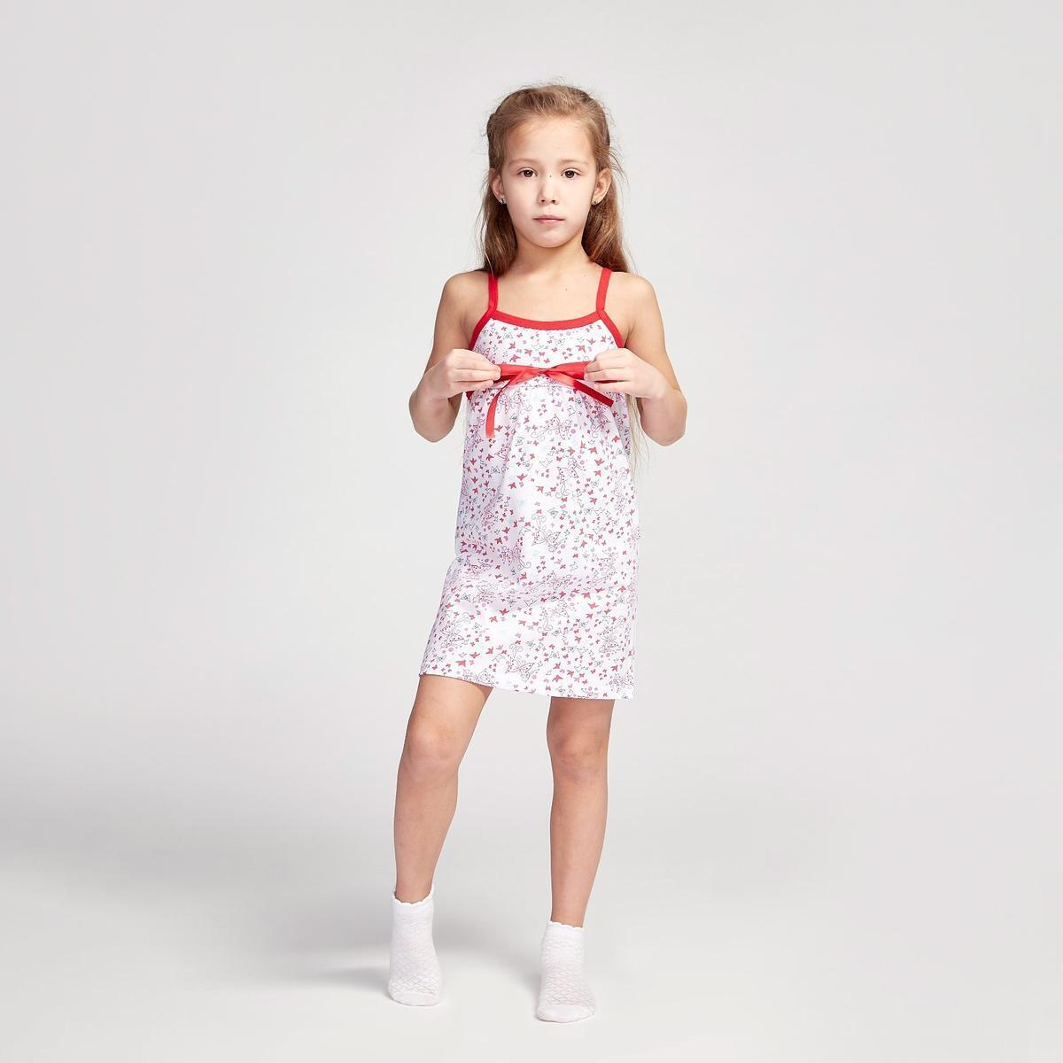 Ночная сорочка для девочек "Tusi", 100% хлопок, размер 134 см, цветочный принт, красные бретели