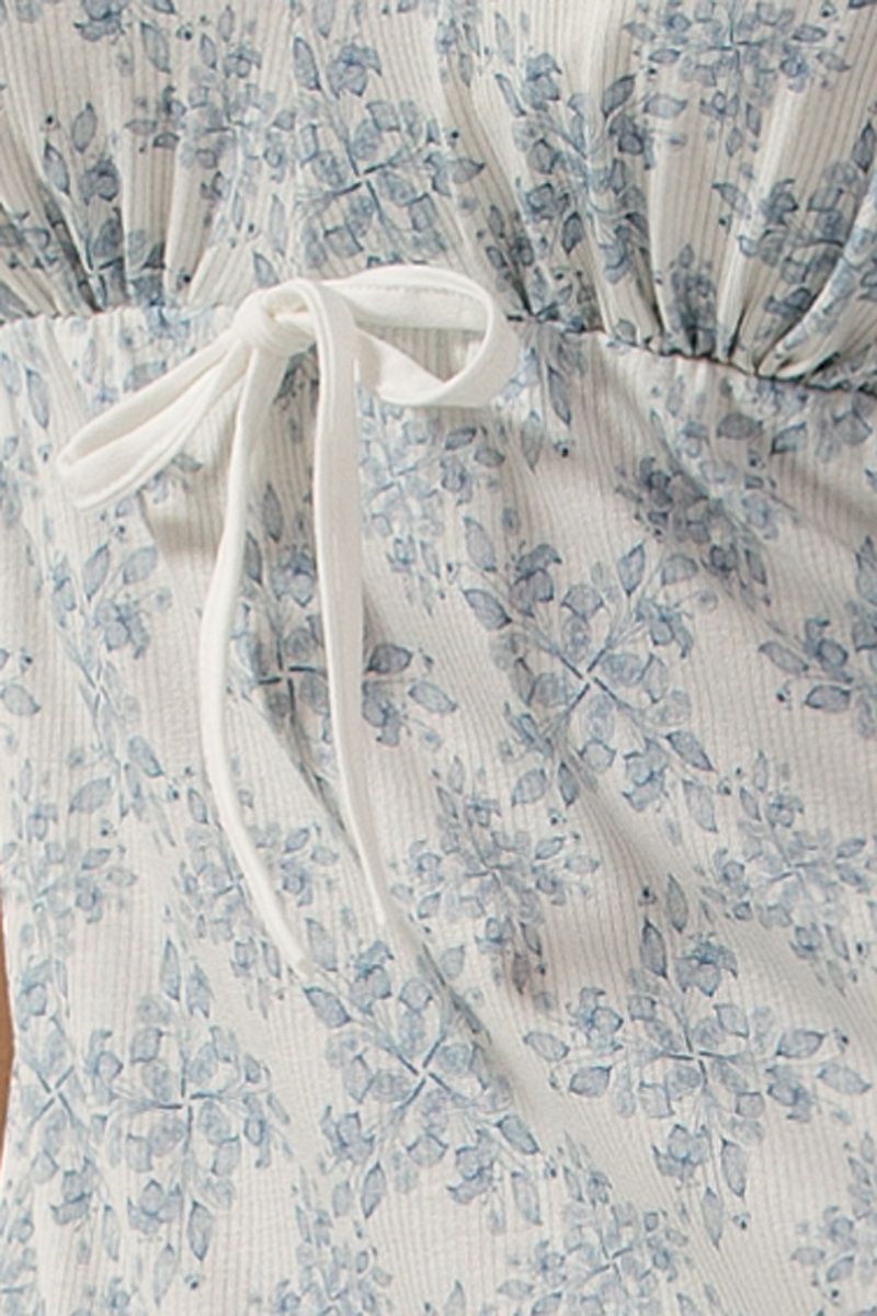 - Стильный принт: Нежный голубой цветочный узор на белом фоне выглядит свежо и элегантно. Узор равномерно распределён по всей поверхности сорочки, создавая целостный и продуманный образ.