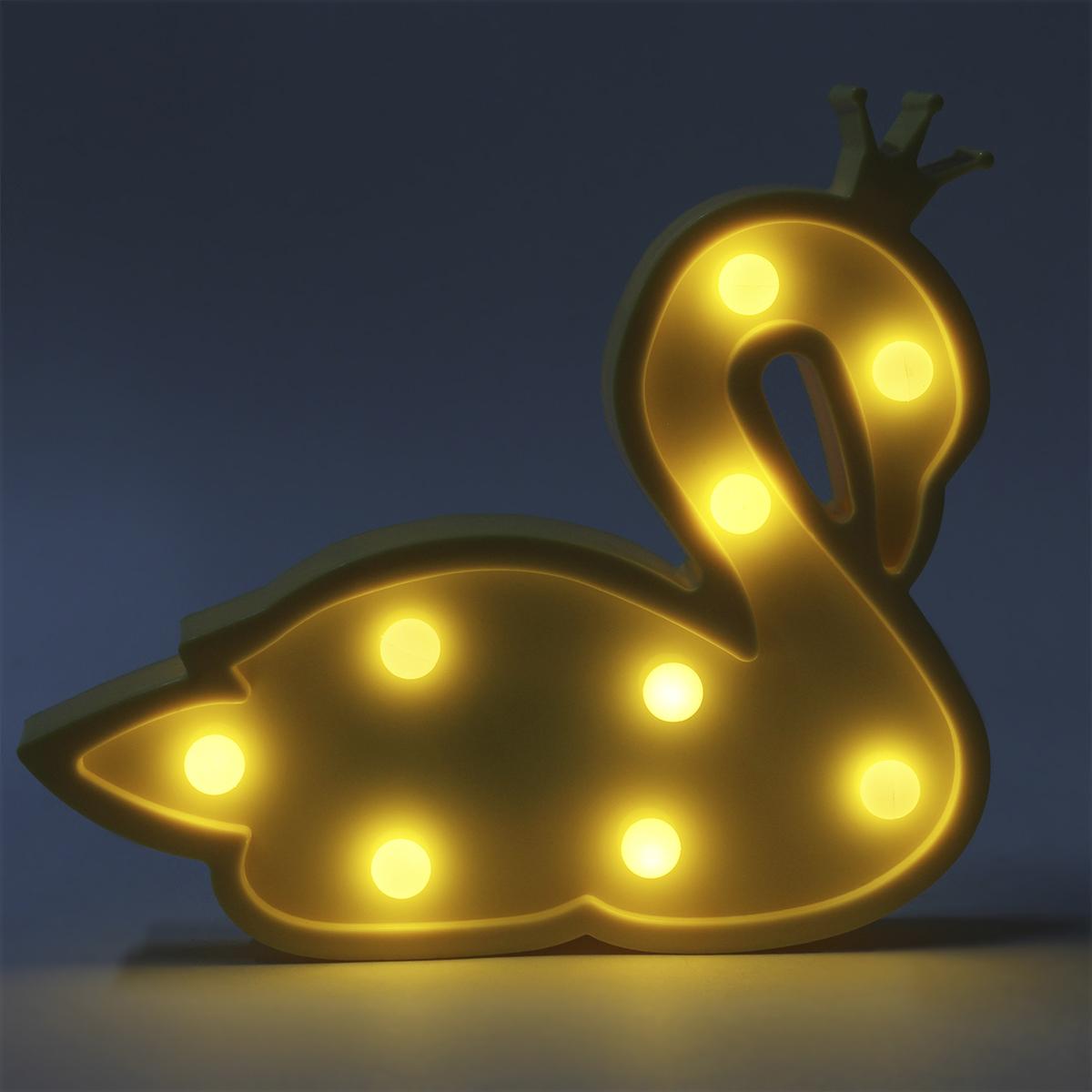 Ночник "Лебедь" на батарейках, 19 см, пластик, 4 цвета: желтый, розовый, белый, микс