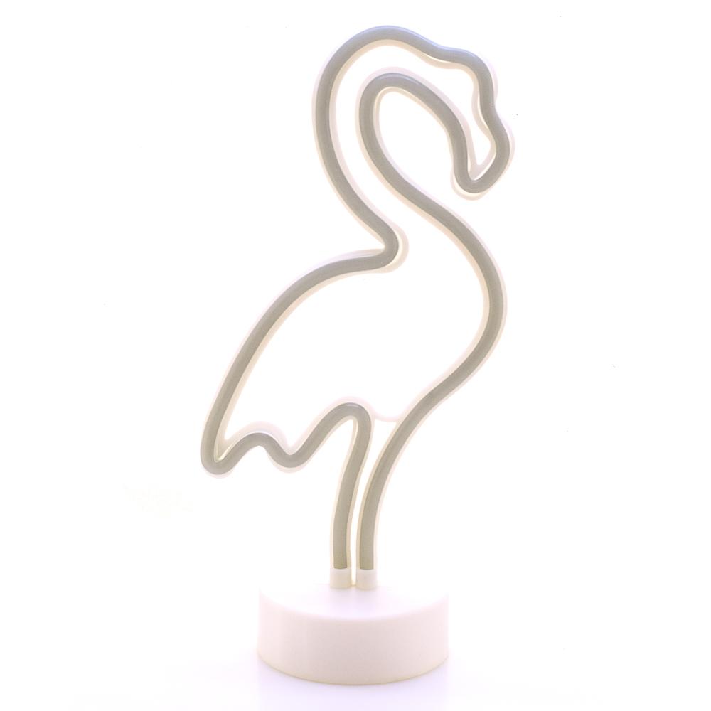 Ночник неоновый «Фламинго» 33 см, пластик, мягкий свет для детской, белый/фиолетовый