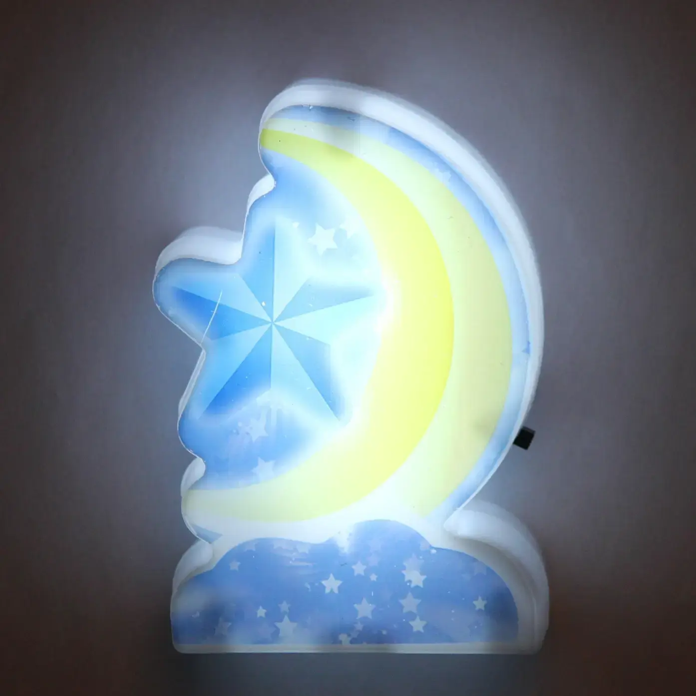 Ночник-светильник «Спокойная ночь» — это идеальное решение для создания комфортной атмосферы в детской комнате. Его яркие цвета и оригинальный дизайн в форме луны и звезды не только радуют глаз, но и помогают вашему ребенку чувствовать себя в безопасности в темное время суток. Этот ночник станет верным спутником для сладких снов и спокойных ночей.