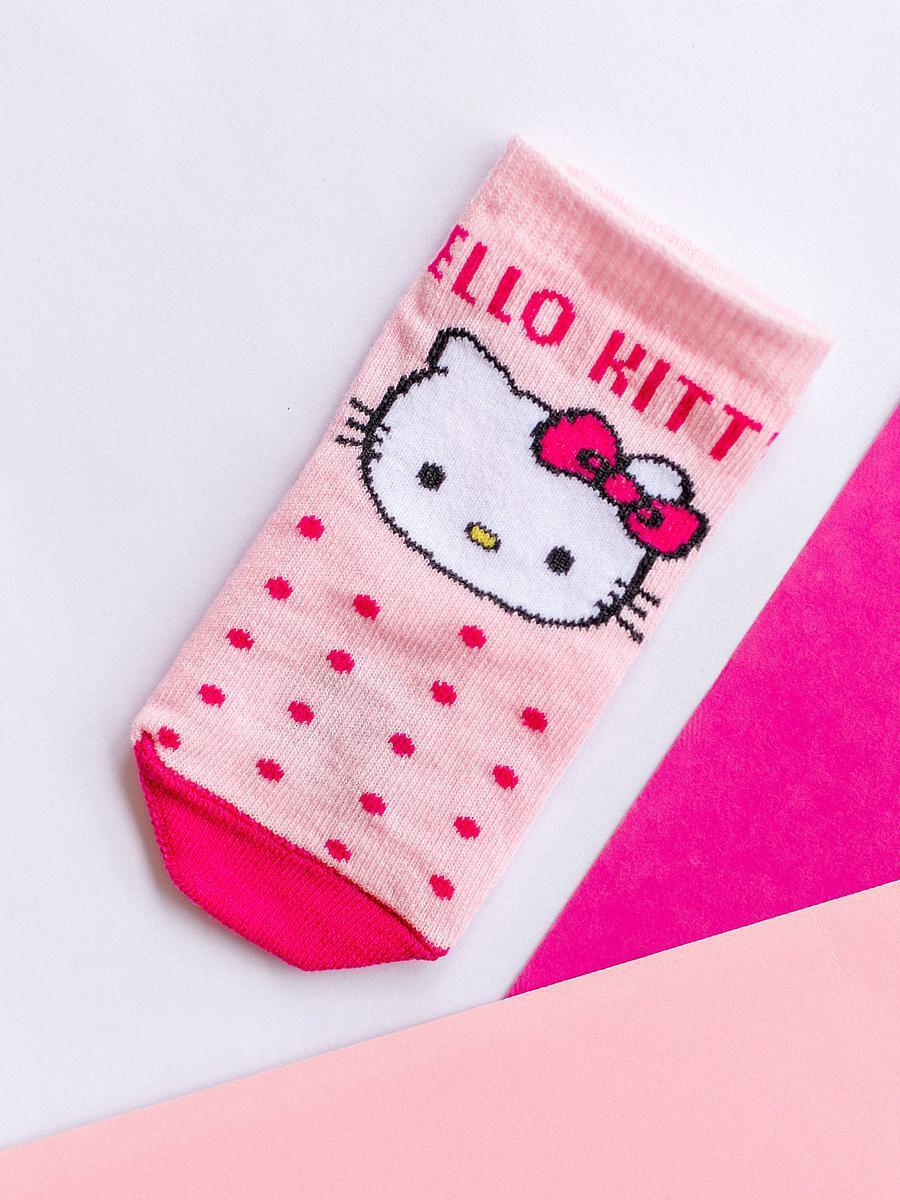 Размер: 10. Цвет: розовый с белыми горошками и принтом Hello Kitty. Край носка выполнен в более насыщенном оттенке розового. Отгружается один товар.
