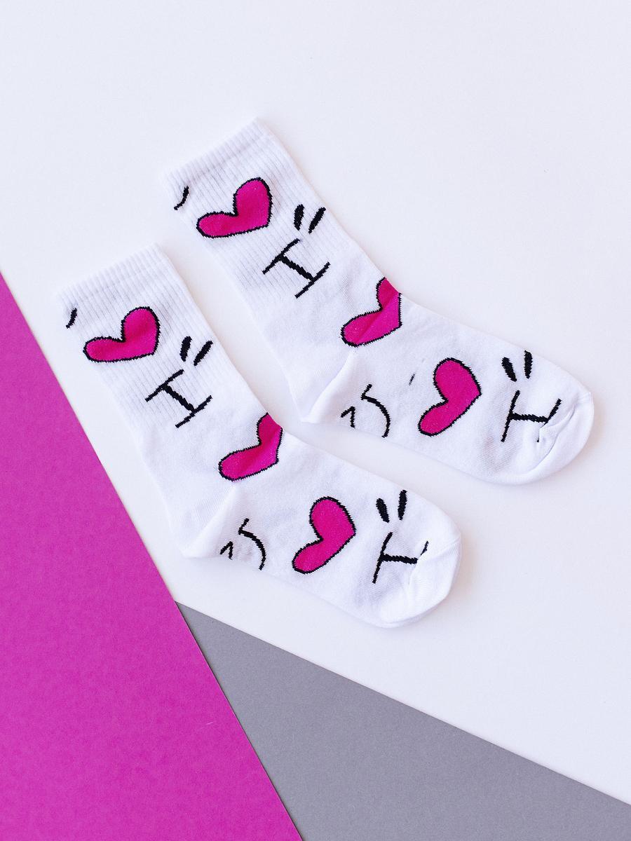 Носки для девочки белые с рисунком 'I ♥', хлопок 80%, размер 20