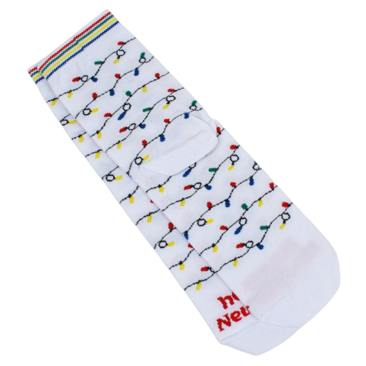 Подарите себе комфорт и настроение в праздничный сезон с хлопковыми носками белого цвета, украшенными насыщенным новогодним дизайном. Яркие гирлянды, полоски в цветах радуги и надпись Happy New Year создают атмосферу ожидания чудес. Такая деталь гардероба подарит удовольствие не только в Новогоднюю ночь, но и в повседневные зимние дни.