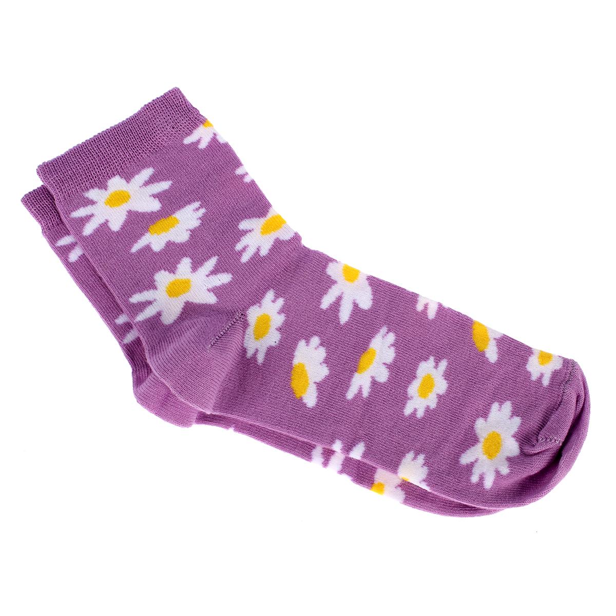 Носки детские хлопковые сиреневые с ромашками, размер 16, комфорт