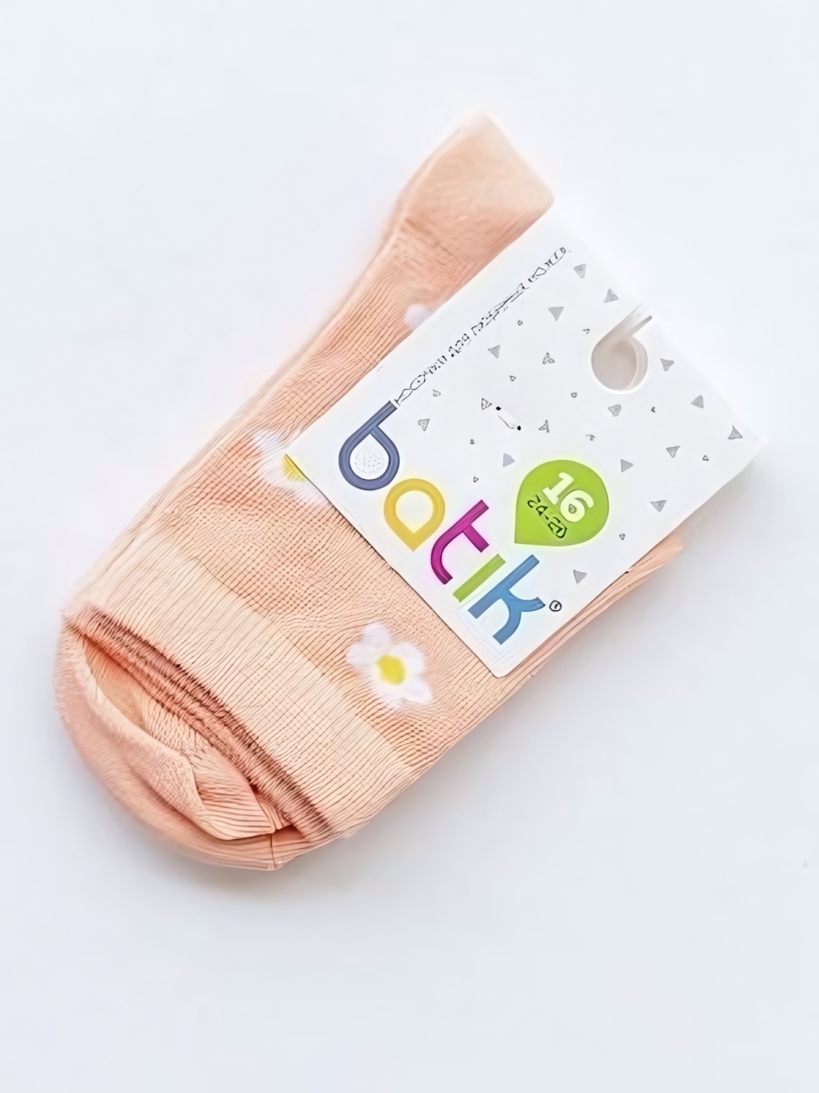 Мягкие и удобные носки для девочек станут незаменимыми в повседневном гардеробе. Персиковый цвет с белыми цветочками добавляет нежности и игривого настроения, а натуральный хлопок в составе обеспечивает комфорт даже при длительной носке.