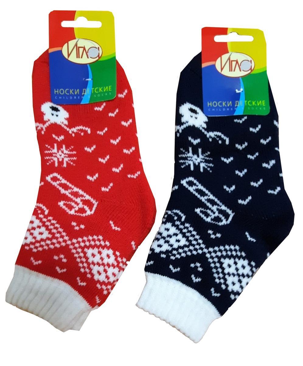 Носки детские 'Игла' р.18, теплые, крупная вязка, разноцветный принт
