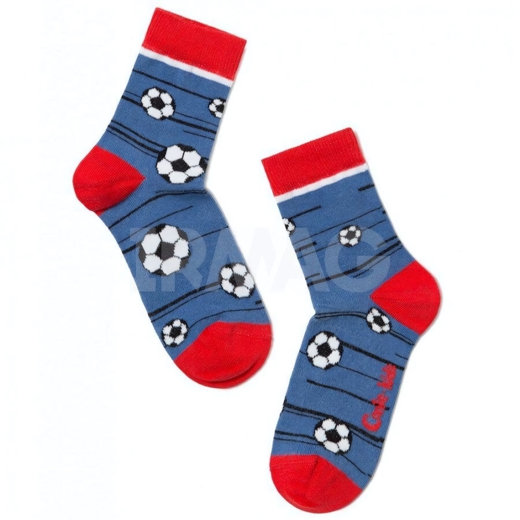 Яркие и удобные детские носки с рисунком футбольных мячей станут любимым аксессуаром для маленького поклонника активных игр. Мягкий хлопок обеспечивает комфорт на весь день, а эластичная резинка надёжно фиксирует носок, не сдавливая ногу. Сочетание синего цвета с контрастными красными манжетами придаёт изделию динамичный и стильный вид.