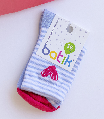 Носки имеют полосатый узор, украшены маленьким сердечком и представлены в цветах в ассортименте. Отгружается один товар, цвет определяется случайным образом. Легко стираются и быстро сохнут, не теряя формы и яркости. Такие носки станут практичным и милым дополнением к детскому гардеробу, радуя ребенка и родителей каждый день.