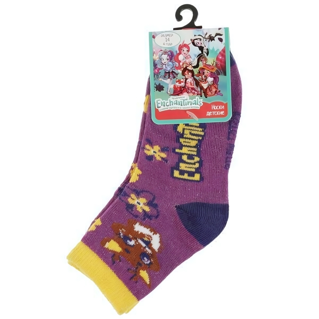 Носки для девочек "Enchantimals", мягкие и дышащие, размер 14, фиолетовый с желтым рисунком, хлопок 90% + эластан 10%