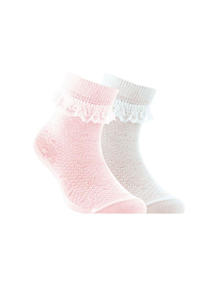 Носки для девочек с кружевной лентой, розовые, размер 16, хлопок 72%