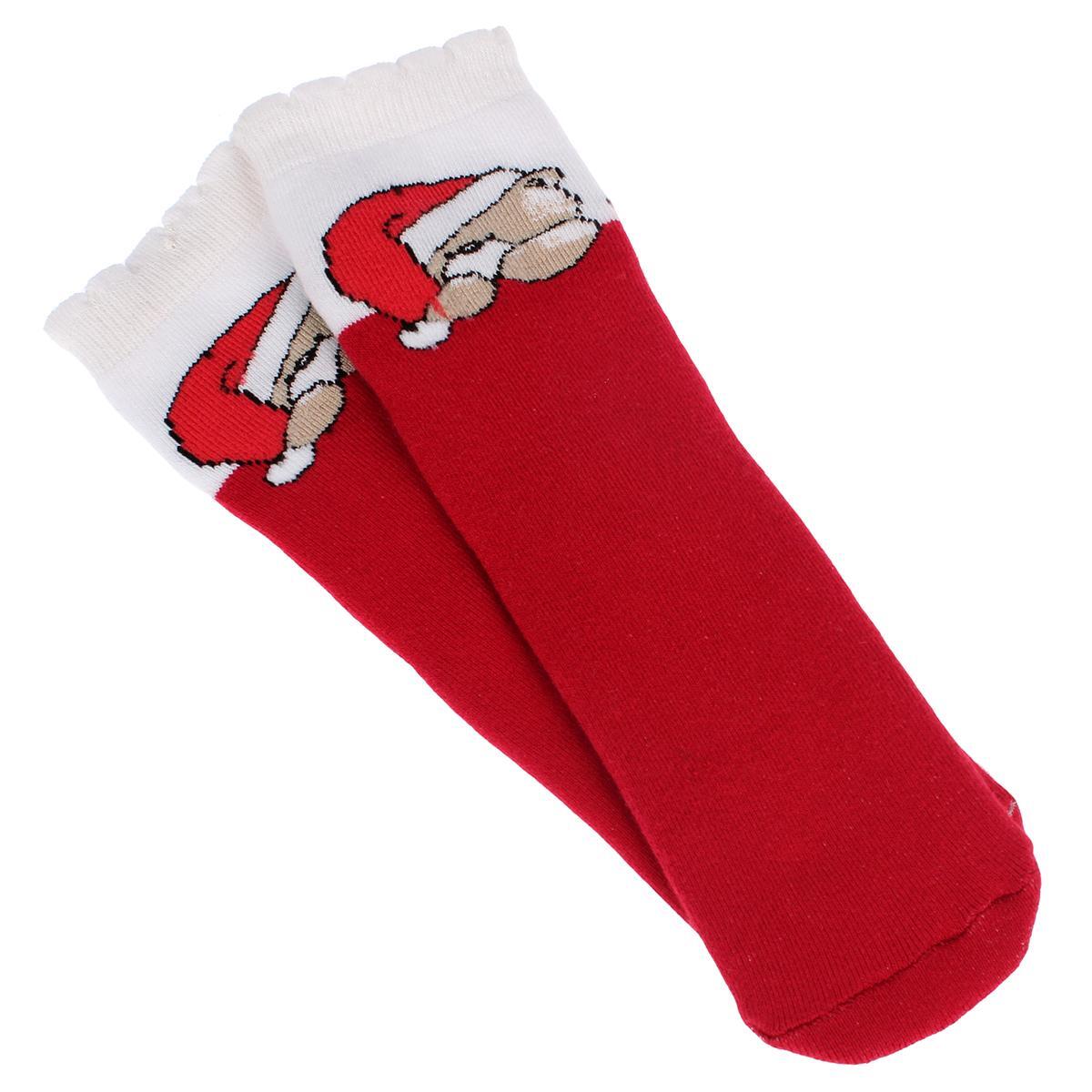 Эти носки создают комфорт с первых секунд, даря тепло и мягкое ощущение при каждом шаге. Красный цвет с контрастным белым верхом и веселым рисунком персонажа в шапке добавит яркости гардеробу и поднимет настроение. Удобная посадка обеспечивает плотное прилегание без излишнего давления.