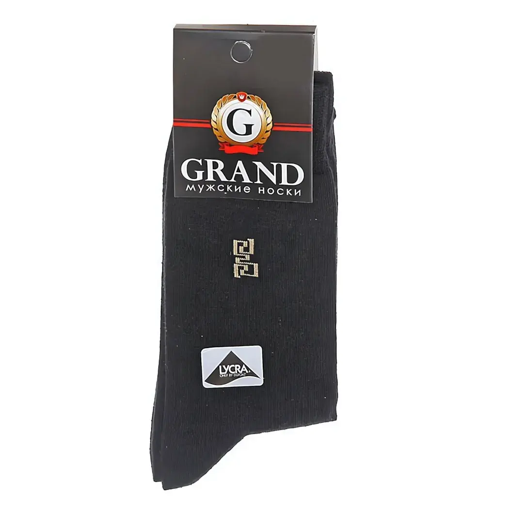 Носки мужские «GRAND LINE М-101», чёрные, рисунок на паголенке, эластан, р.29