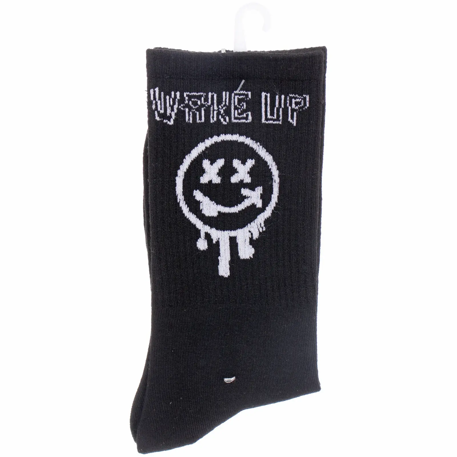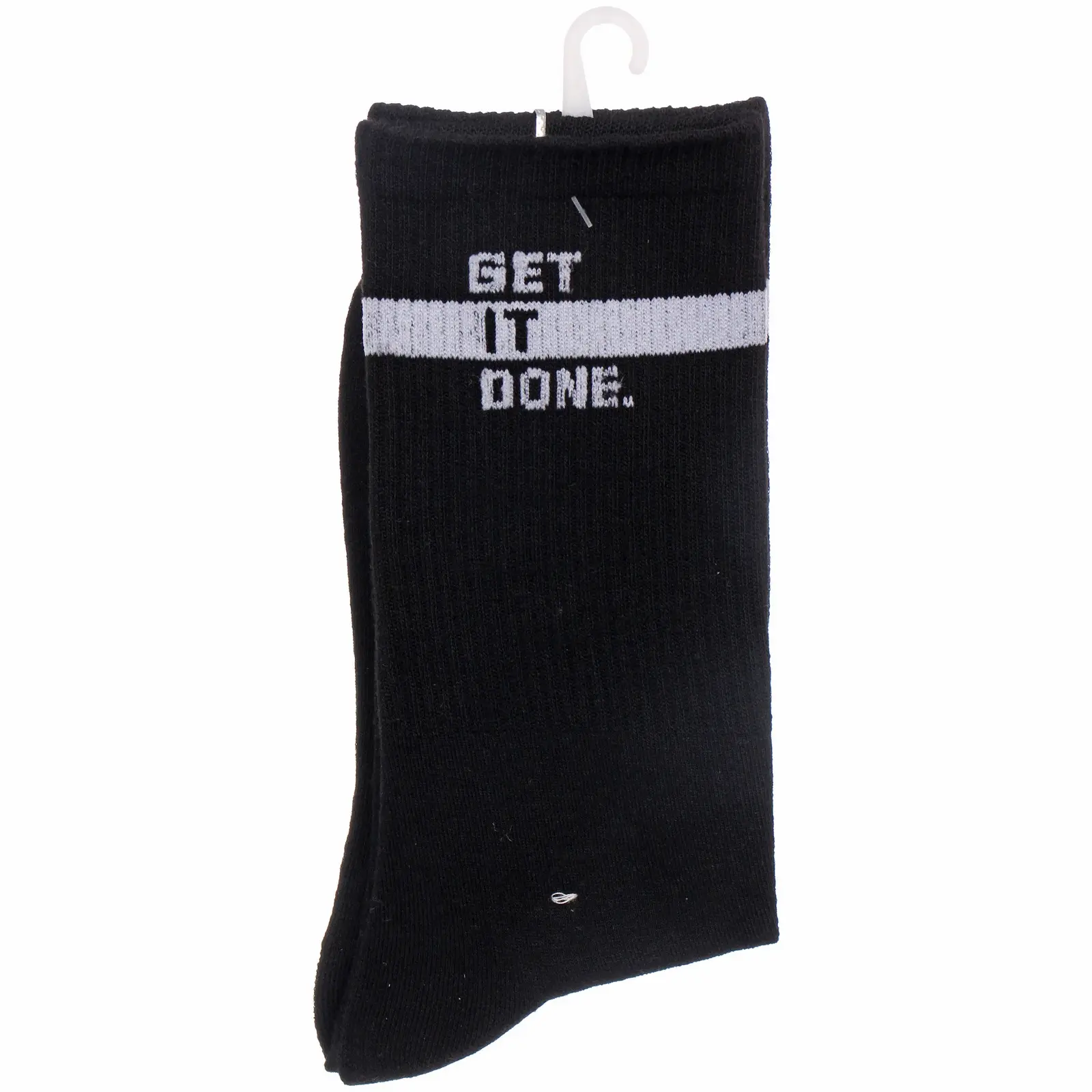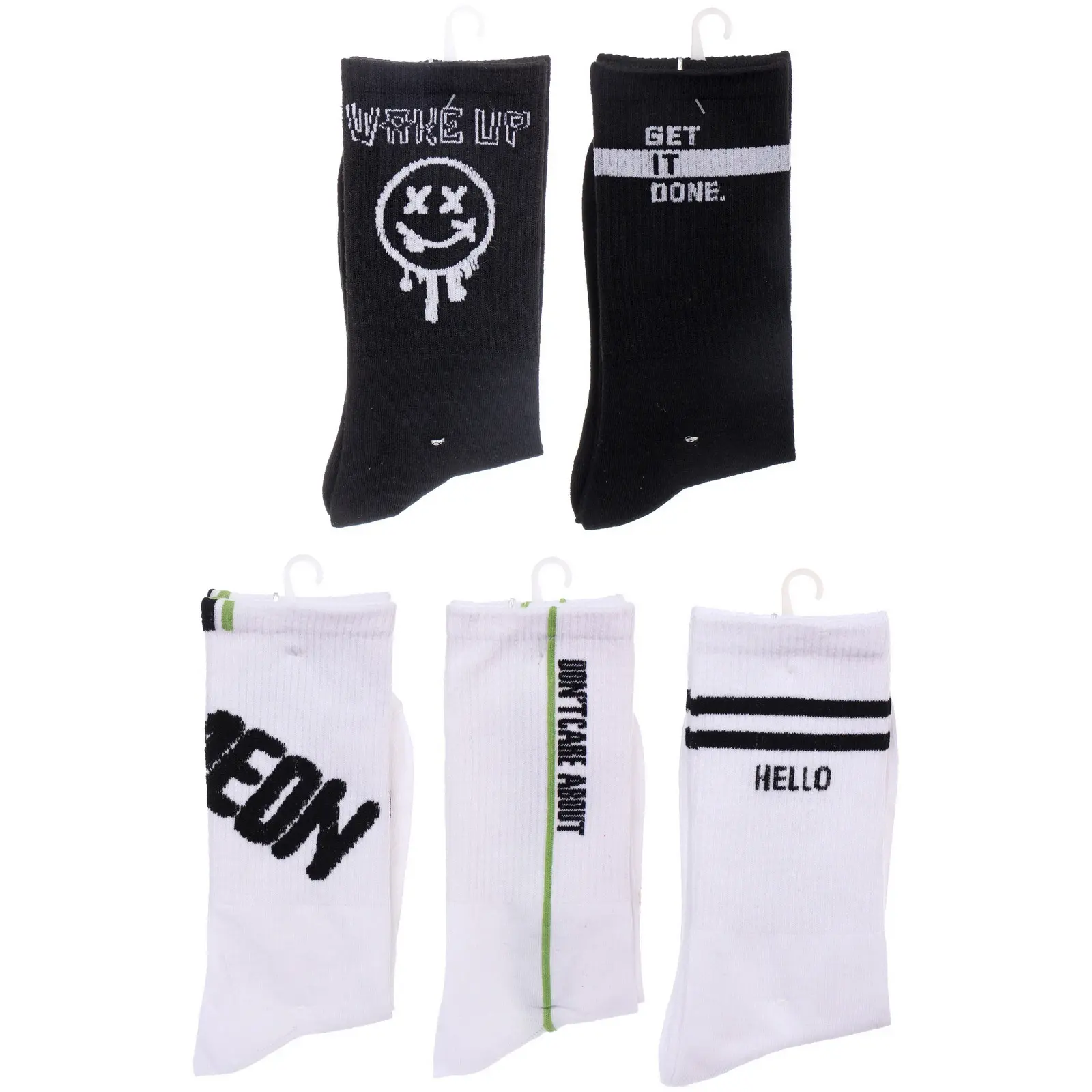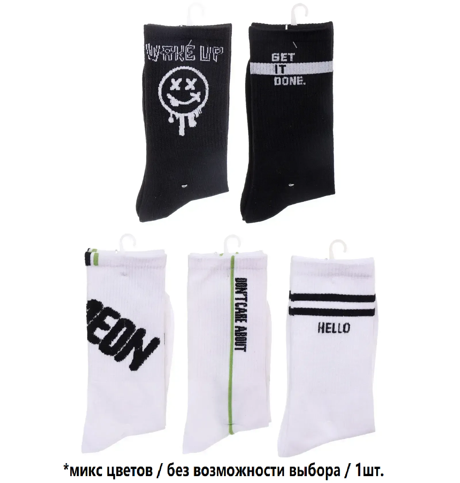 - Стильный дизайн: яркие надписи и графические элементы делают носки заметными и оригинальными.