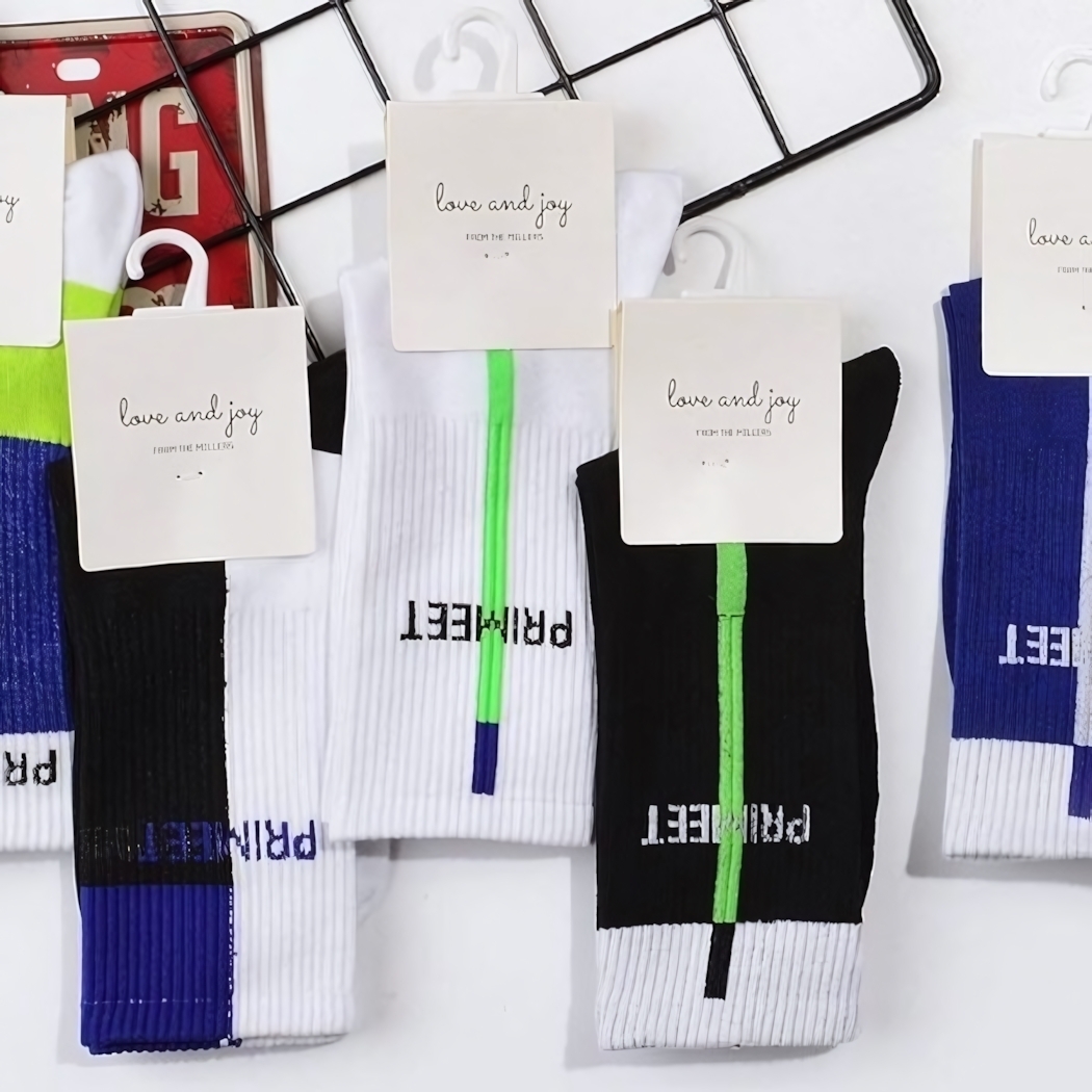 Носки представлены в различных цветовых комбинациях, включая черные, белые и синие, что позволяет выбрать подходящий вариант под любой стиль одежды. Они имеют стандартную форму с четко выраженным мыском и пяткой, что обеспечивает комфортную посадку на ноге. Не упустите возможность добавить в свой гардероб эти стильные и практичные носки!