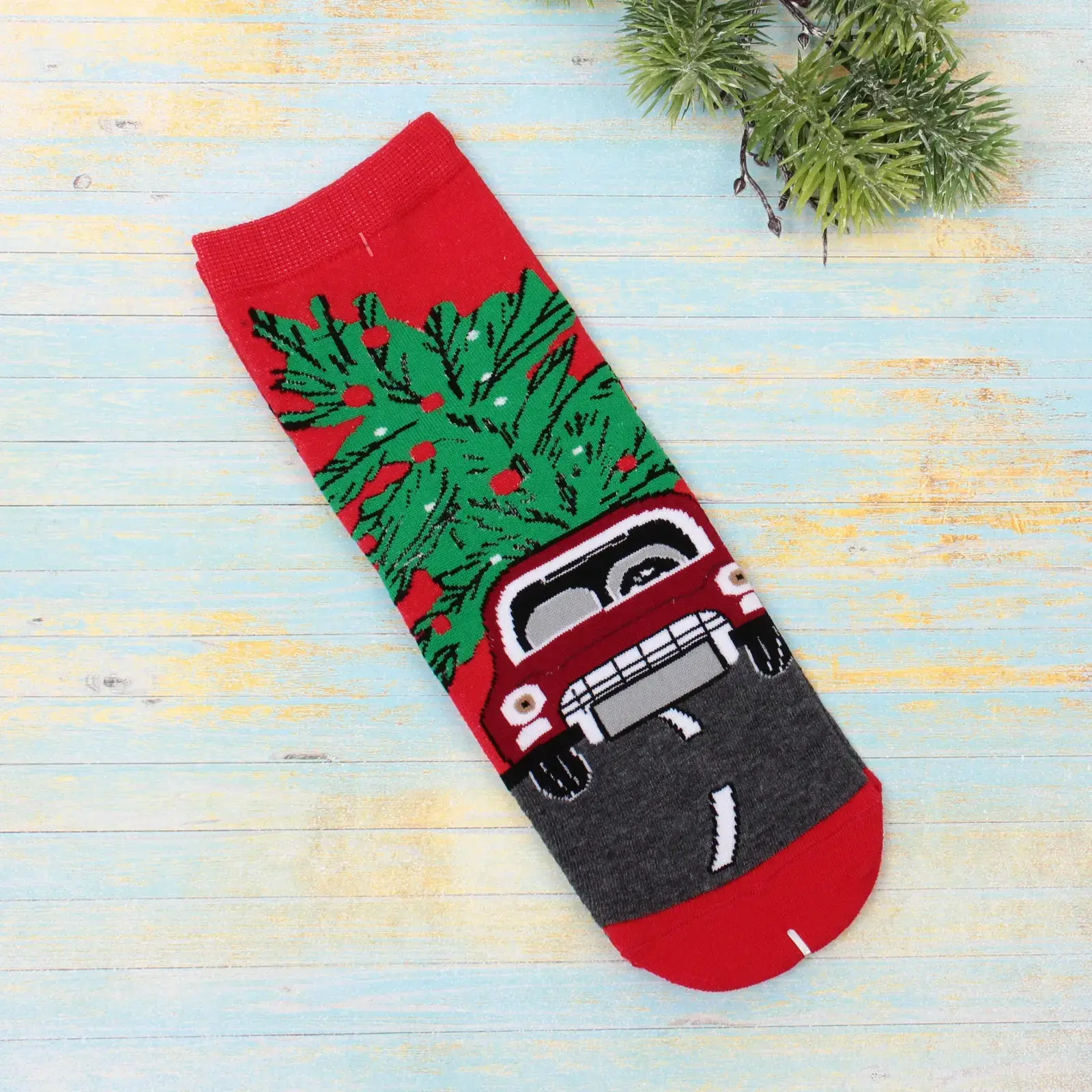 Новогодние носки «SKAZKA» — это не просто аксессуар, а символ волшебства и уюта в вашем доме. Они идеально подойдут для создания атмосферы праздника, как для взрослых, так и для детей. Яркий дизайн с изображением красного автомобиля и рождественской ёлки на крыше добавит веселья в ваши новогодние праздники.
