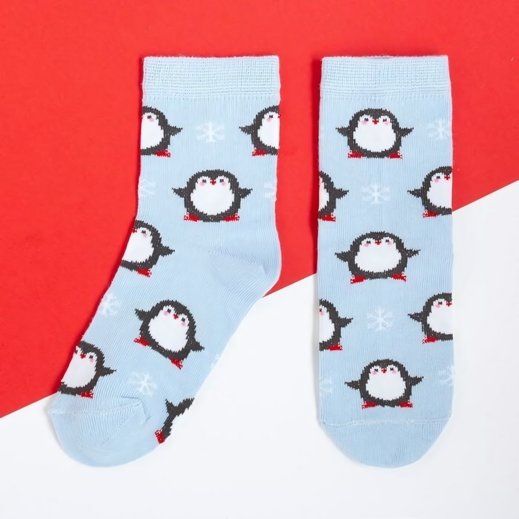 Уютные носки с веселым принтом пингвинов для детей 16‑18 см