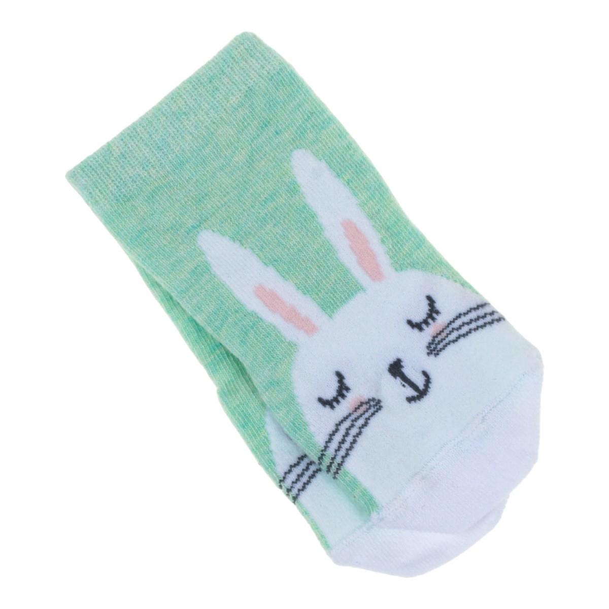 Мягкие и приятные на ощупь носки обеспечат комфорт вашему ребёнку в течение всего дня. Выполненные в нежном светло-зелёном цвете с милым изображением кролика, они не только согреют, но и добавят яркий акцент в повседневный образ. Такой дизайн обязательно понравится как детям, так и родителям, ценящим уют и привлекательный внешний вид одежды.