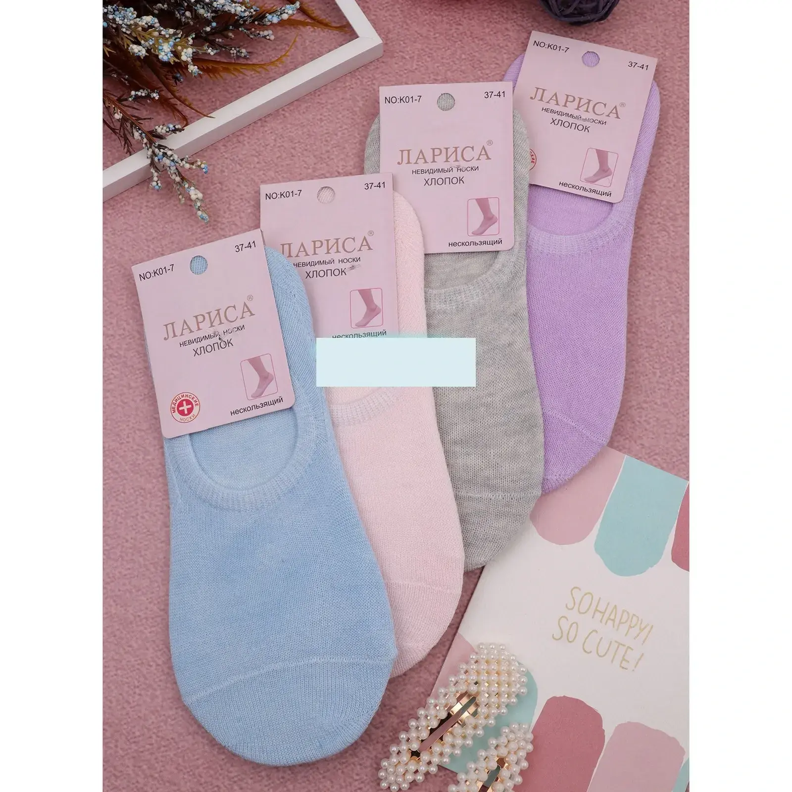 Каждая пара носков упакована в стильную картонную упаковку с надписью «ЛАРИСА» и информацией о составе. Носки имеют аккуратный край и гладкую текстуру, что делает их приятными на ощупь. Размер 37-41 обеспечивает комфортную посадку на ноге, а разнообразие цветов позволяет выбрать идеальный вариант для любого наряда.