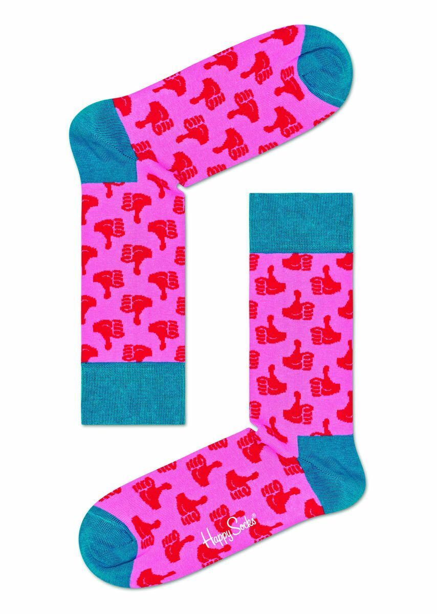 Основной цвет носков — белый, что позволяет легко сочетать их с различной одеждой. Яркий принт с изображением рук с поднятыми большими пальцами добавляет игривости и оригинальности. Носки имеют стандартную длину и форму, что делает их удобными для носки в течение всего дня.