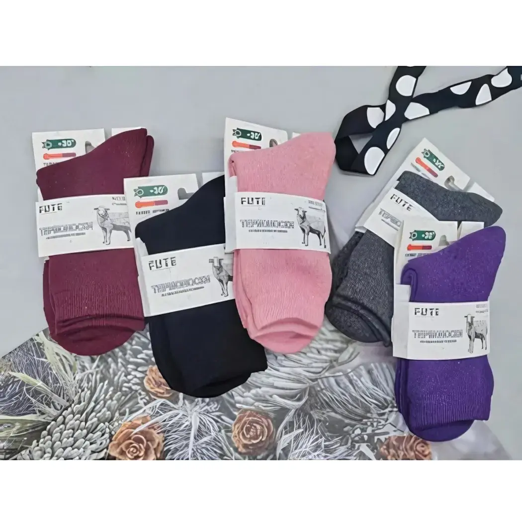 Размер носков составляет 36-40, что делает их универсальными для большинства женщин. Каждая пара упакована в яркую упаковку с информацией о температурных характеристиках и бренде. Носки FUTE — это идеальный выбор для тех, кто ценит качество и комфорт.