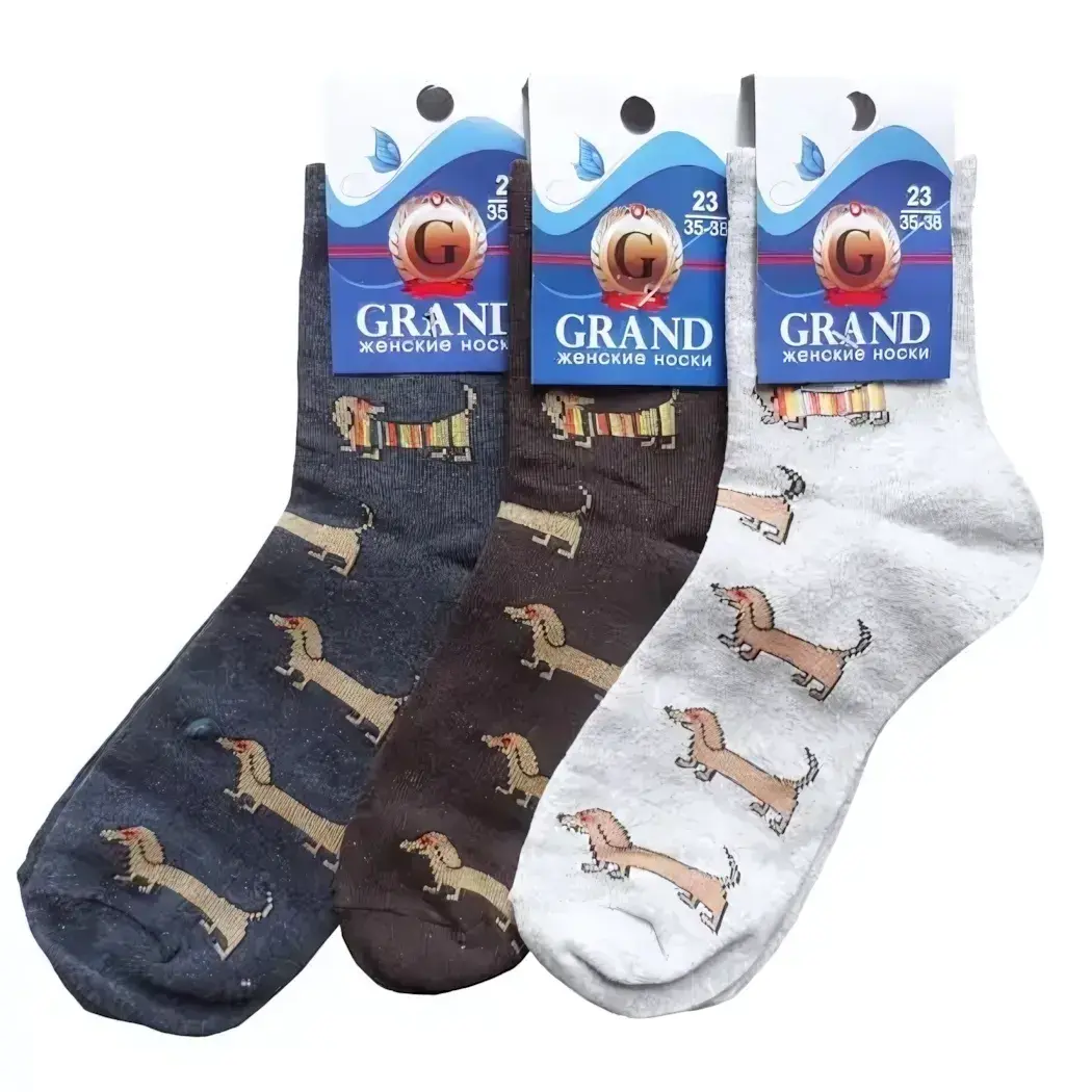Носки женские "GRAND LINE" с рисунком таксы, размер 35-38, 3 цвета