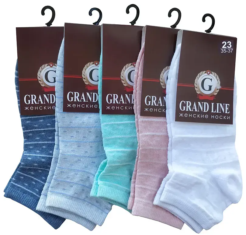 Женские носки «grand line» созданы для тех, кто ценит комфорт и индивидуальный стиль. Благодаря оригинальным расцветкам — темно-синий, светло-синий, мятный, розовый и белый — ваша коллекция пополнится свежими акцентами, которые подойдут к разному настроению и случаю. Текстурные элементы в виде сетки, полосок и гороха добавляют современности, а приятная на ощупь ткань обеспечивает максимальный комфорт на протяжении всего дня.