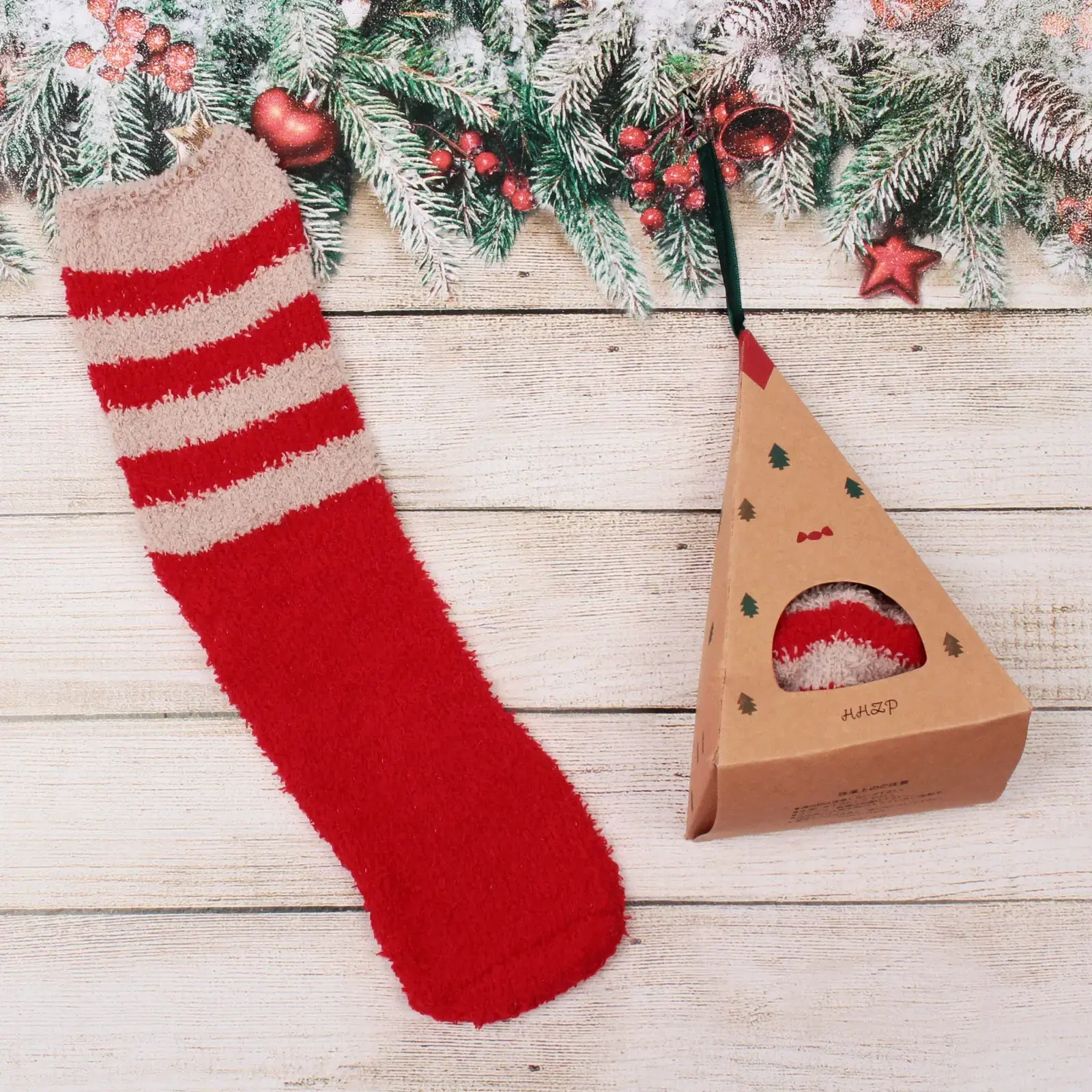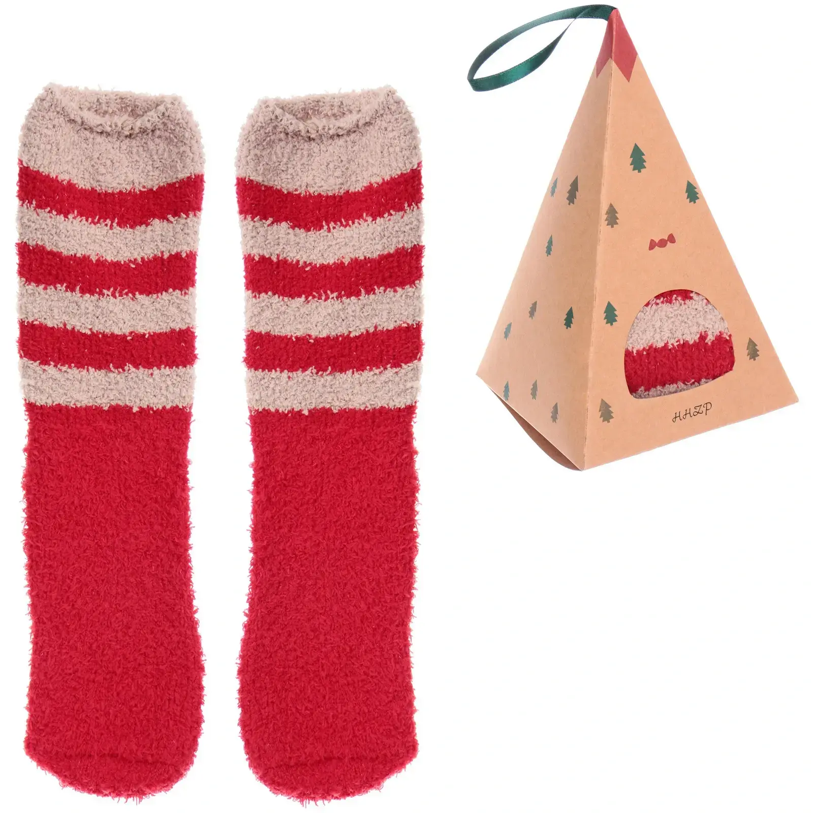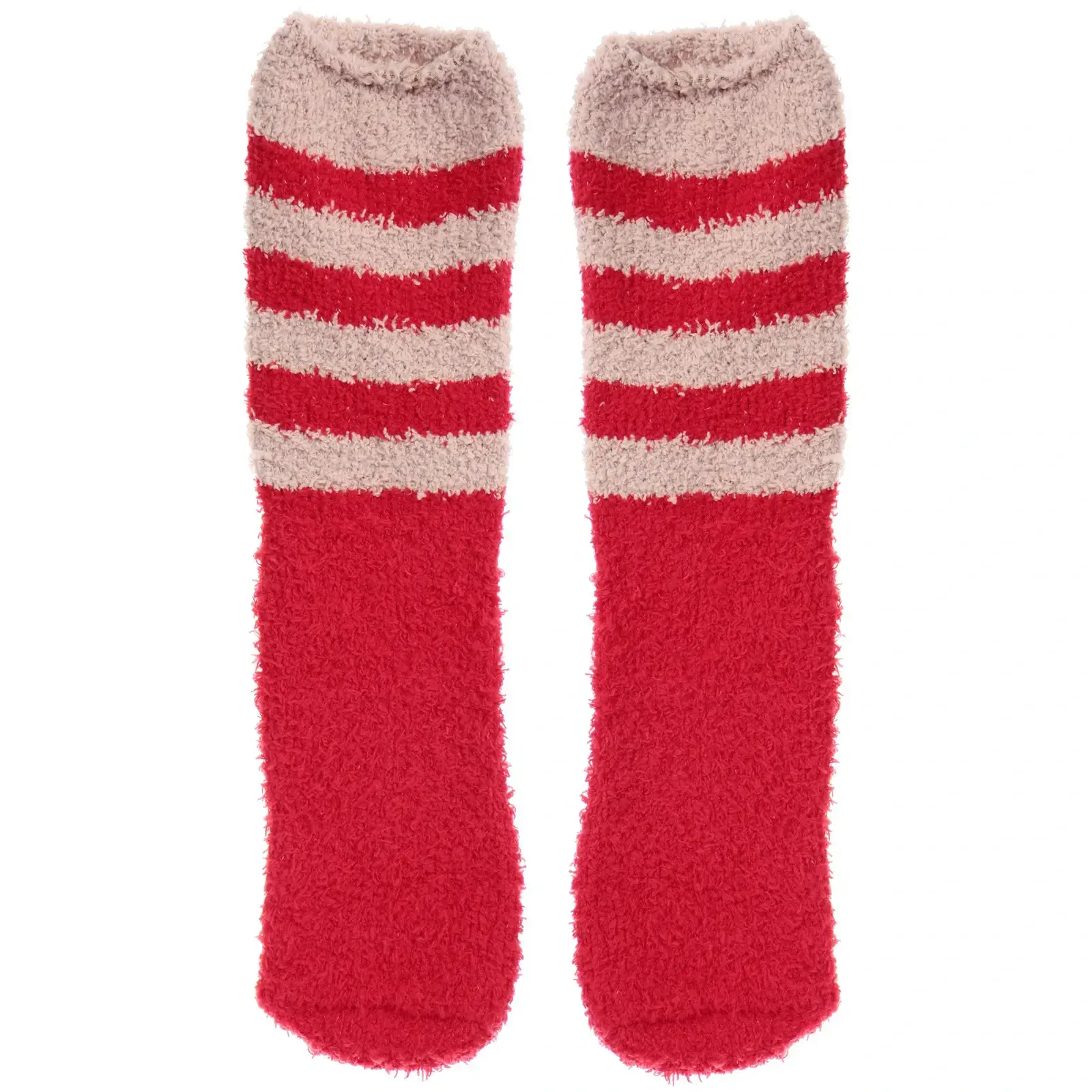 Носки имеют стандартную форму и размер 36-39, что делает их универсальными для большинства женщин. Они прекрасно подходят для домашнего использования, а также могут стать стильным дополнением к вашему зимнему гардеробу. Мягкий и пушистый материал обеспечивает комфорт при носке, а яркий красный цвет с бежевыми полосками добавляет праздничного настроения.