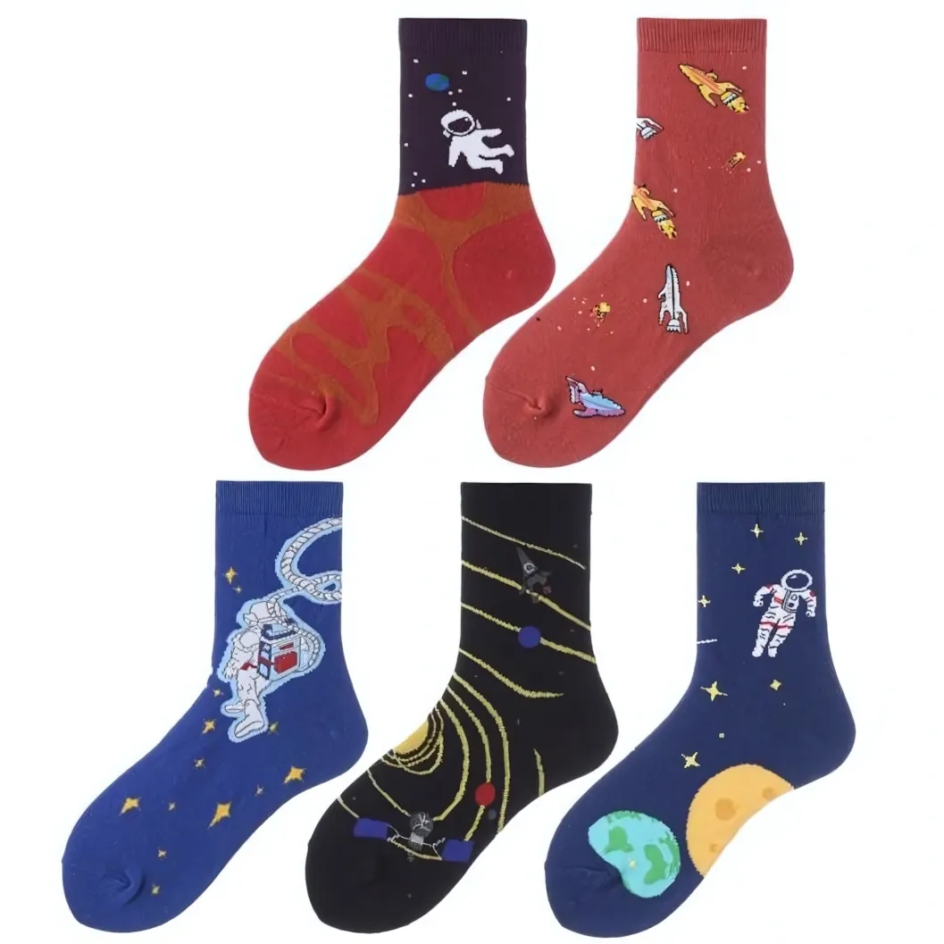 Подарите себе комфорт и яркие эмоции с женскими носками с космическим принтом! Эти носки — не просто практичный аксессуар, а настоящая деталь гардероба, которая поднимет настроение каждый день. Каждый носок украшен уникальным рисунком на тему космоса, что делает их особенными.