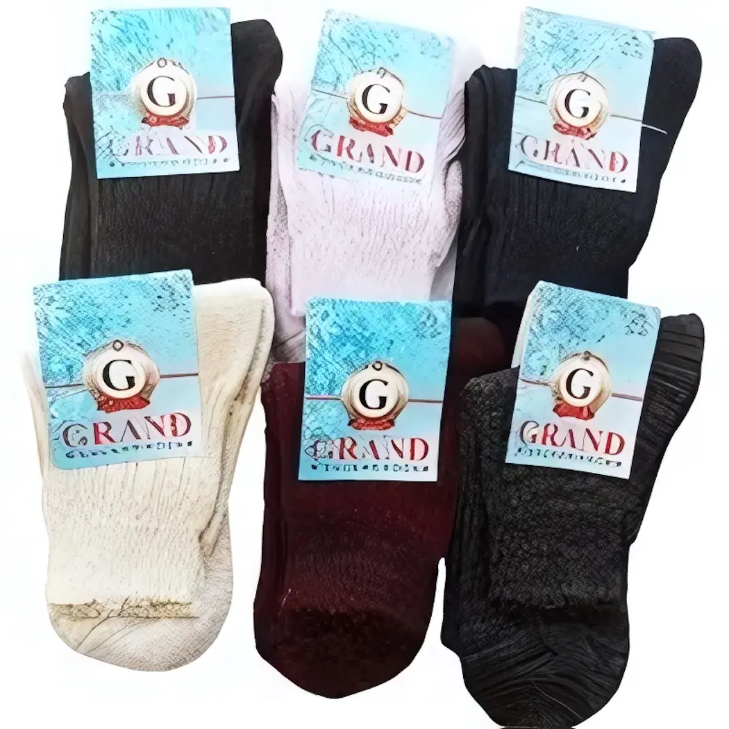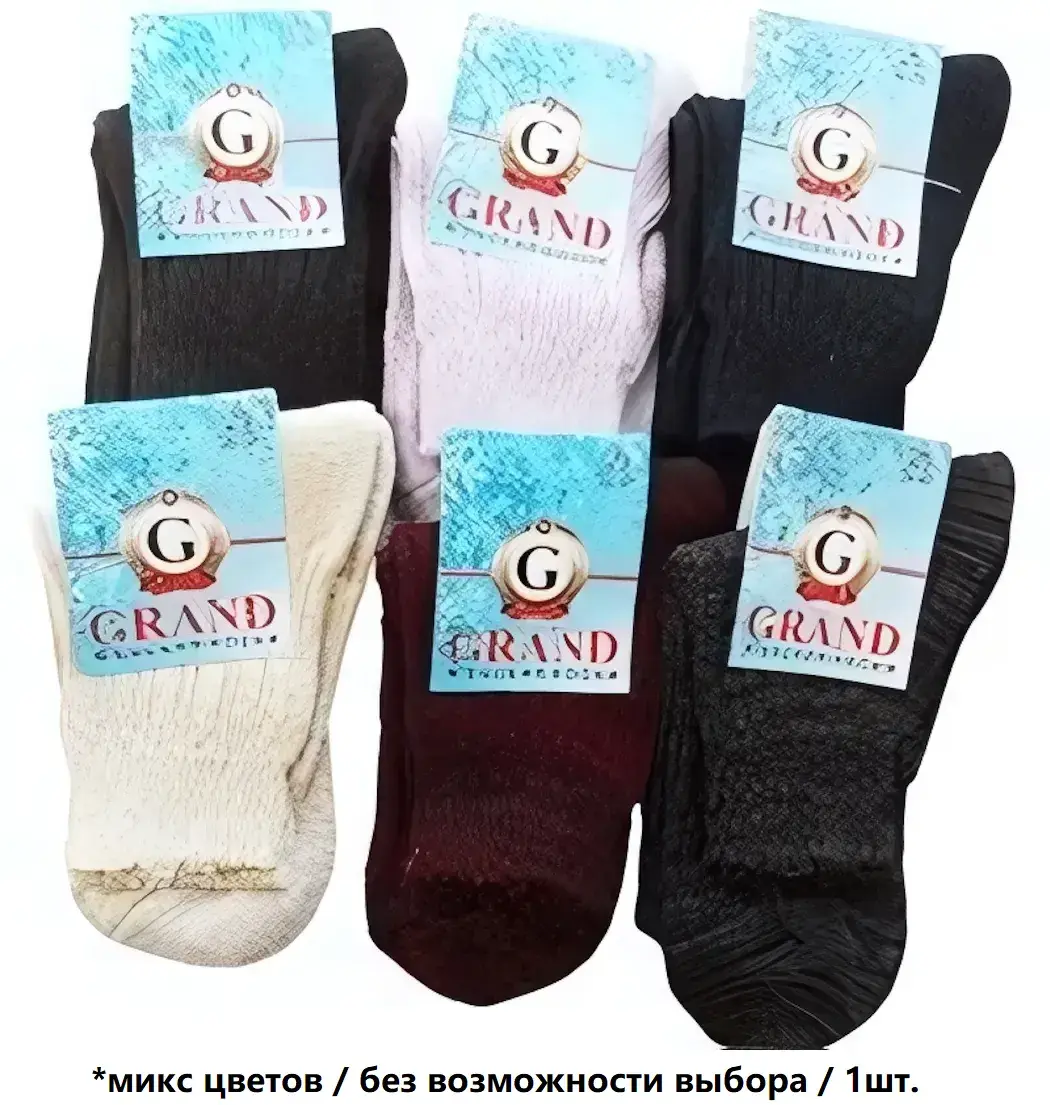 Размер носков составляет 25, что делает их подходящими для большинства женщин. В ассортимент входят носки различных цветов, включая черный, белый, розовый, бордовый и темно-коричневый. Каждый носок украшен ярлыком с логотипом «G» и надписью «GRAND», что подчеркивает их качество и стиль. Не упустите возможность добавить в свой гардероб эти теплые и уютные носки, которые станут вашим незаменимым аксессуаром в холодное время года!