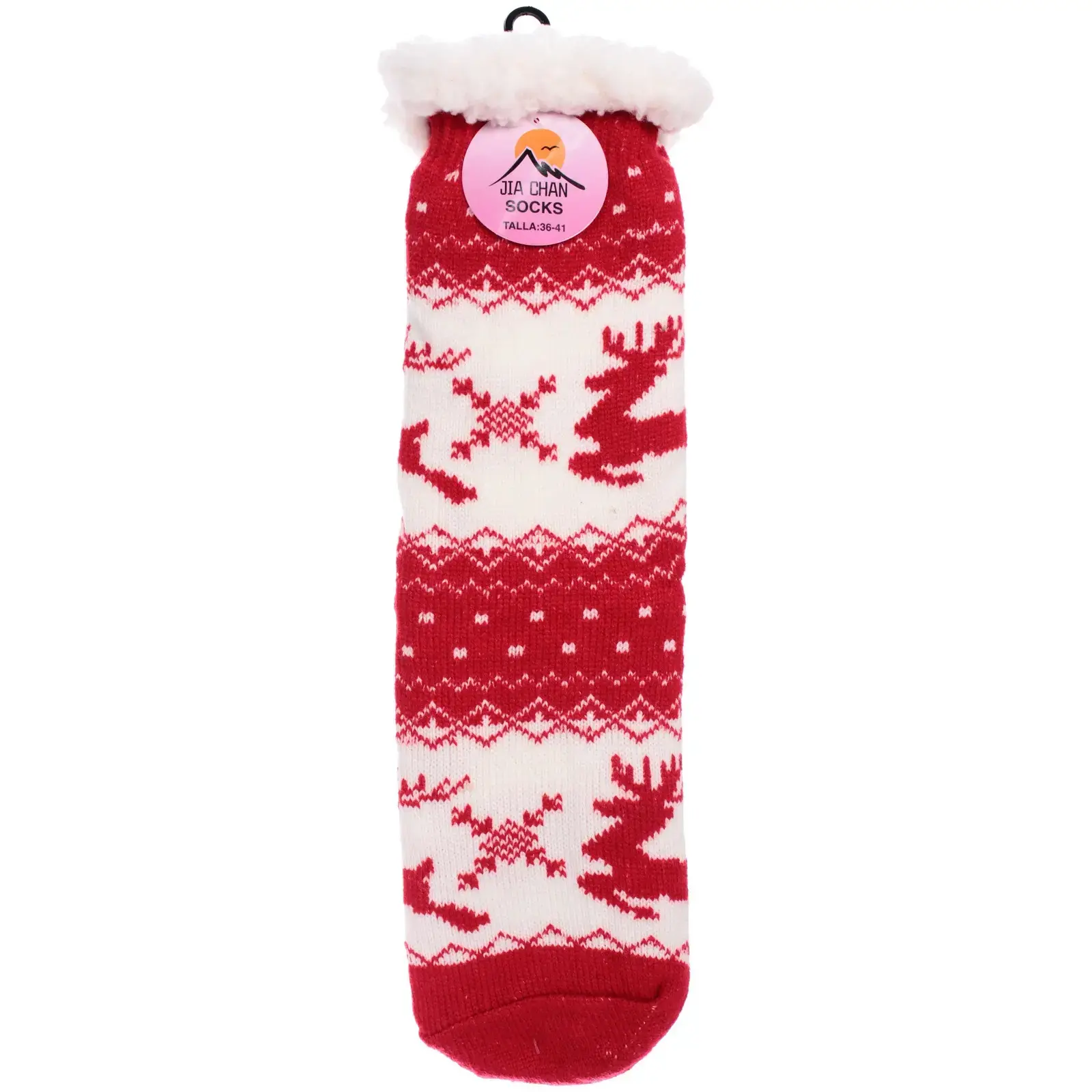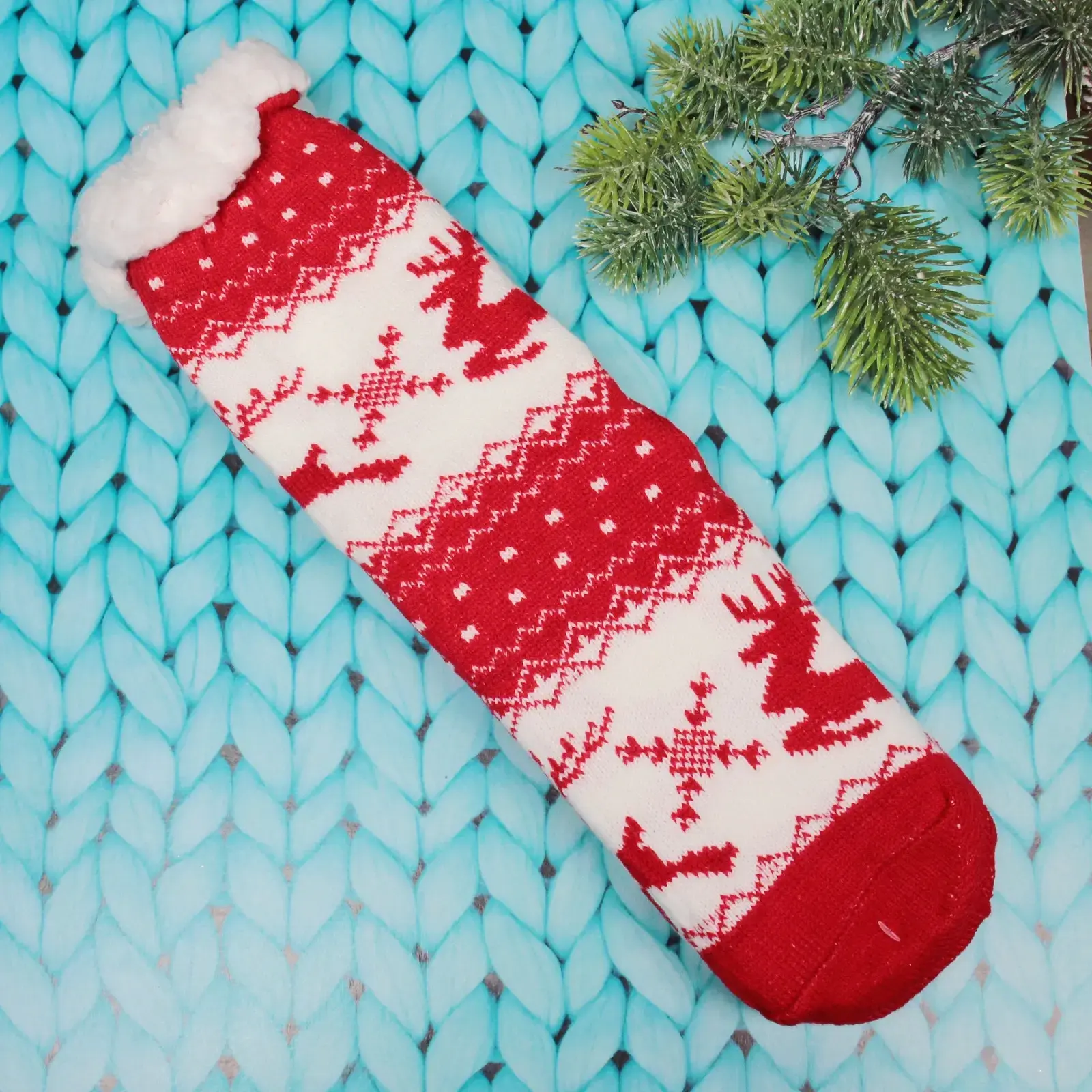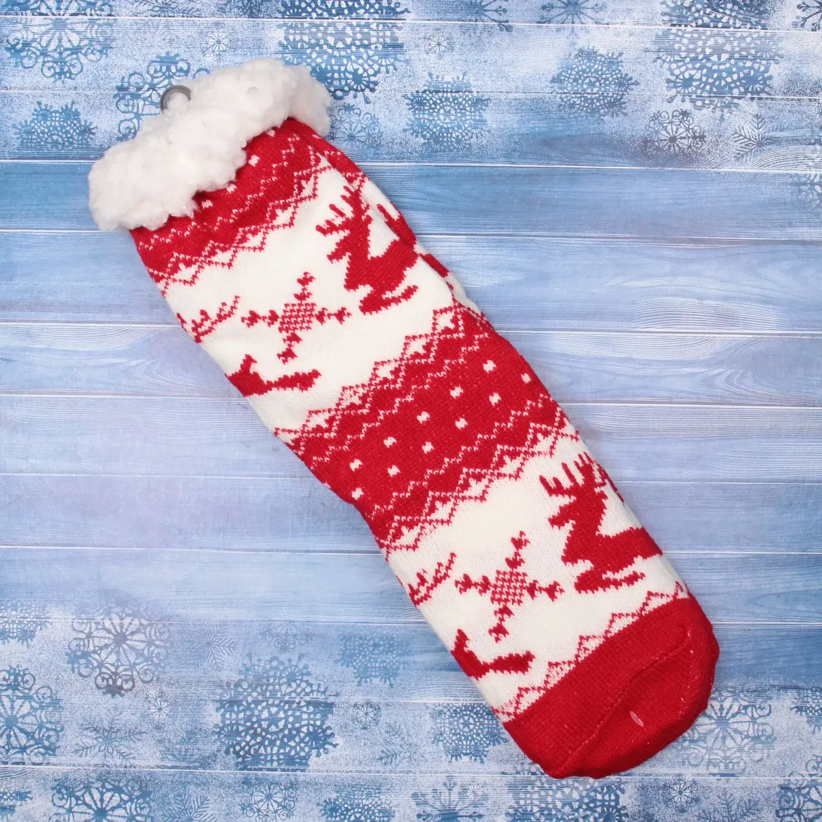 Носки имеют стандартную длину и форму, что делает их удобными для носки. Ярко-красный цвет с белыми узорами привлекает внимание и создает праздничное настроение. Высокий ворс и мягкий материал обеспечивают тепло и комфорт в холодные дни. Не упустите возможность добавить этот стильный элемент в ваш зимний гардероб!